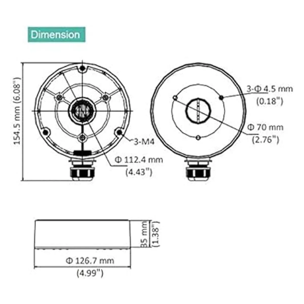 CB130T, LTB03W, DS1280ZJDM8 Caja de conexiones de base de conducto al aire libre para cámara domo DS2CD2343G0I, DS2CD2383G0I, reemplazo de CBM