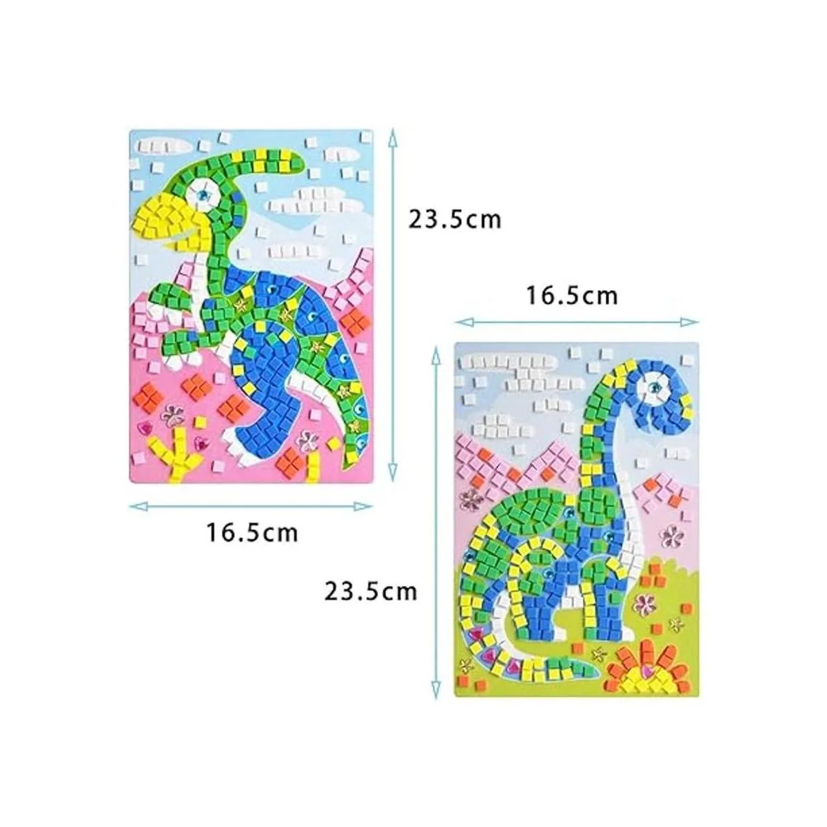 Tamaño: cada mosaico adhesivo mide 9.0 in x 6.5 in con 384 mosaicos de espuma y 19 diamantes de imitación.
