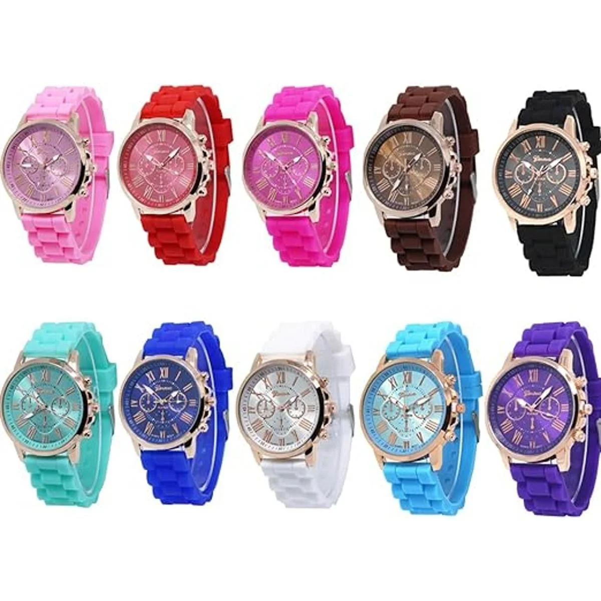 CdyBox Reloj analógico de cuarzo para mujer y hombre, pulsera unisex de silicona para mujer, color gelatina, paquete de 10