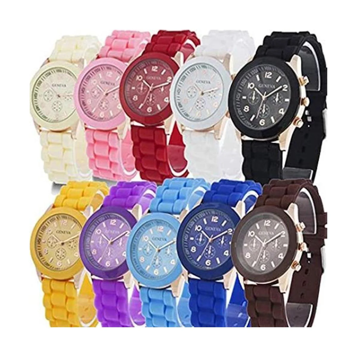 CdyBox, reloj de pulsera para hombres y mujeres, juego de 10, casual, cuarzo, de silicona, color Candy