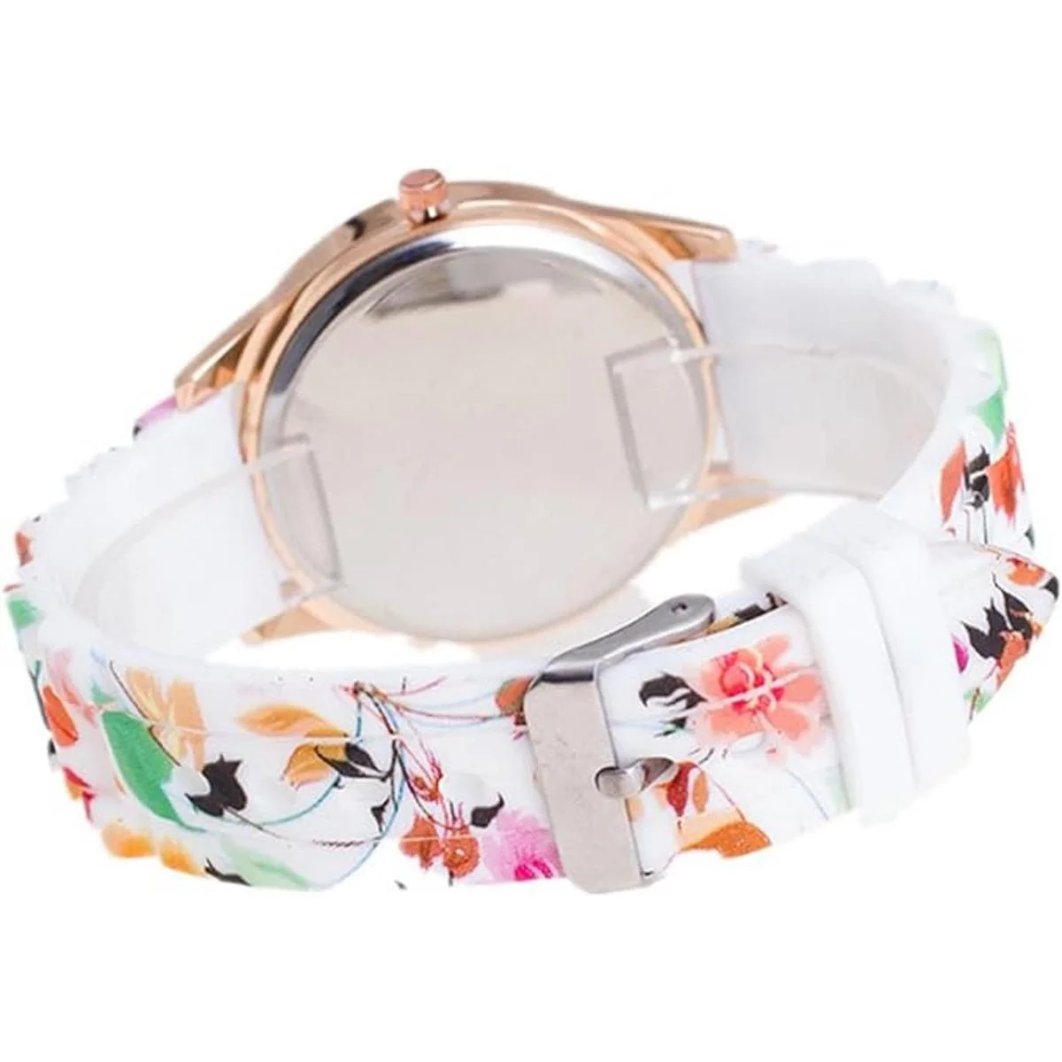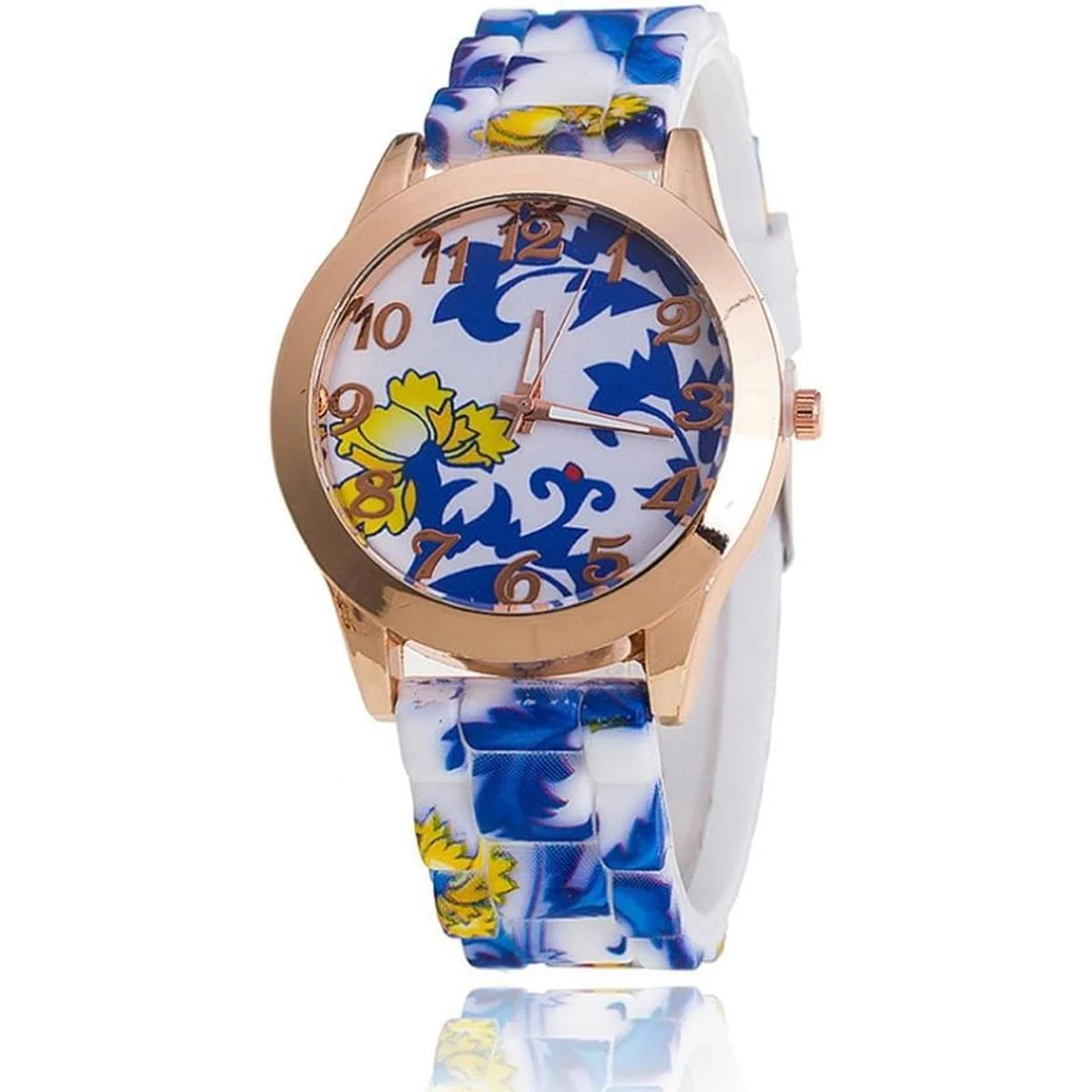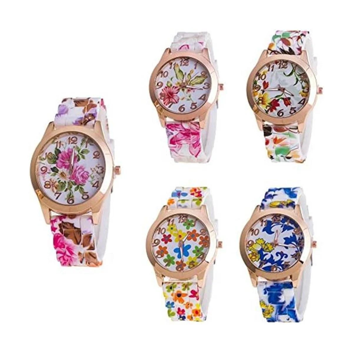 CdyBox, relojes analógicos con diseño floral, con correa de silicona, con rosas y números dorados, para mujer y niña paquete de 5