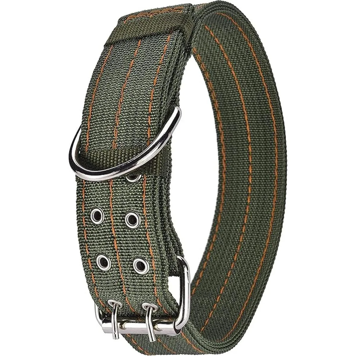 Cdycam Collar militar ajustable de nailon resistente y doble grueso para perro con anillo en D de metal y hebilla L, verde