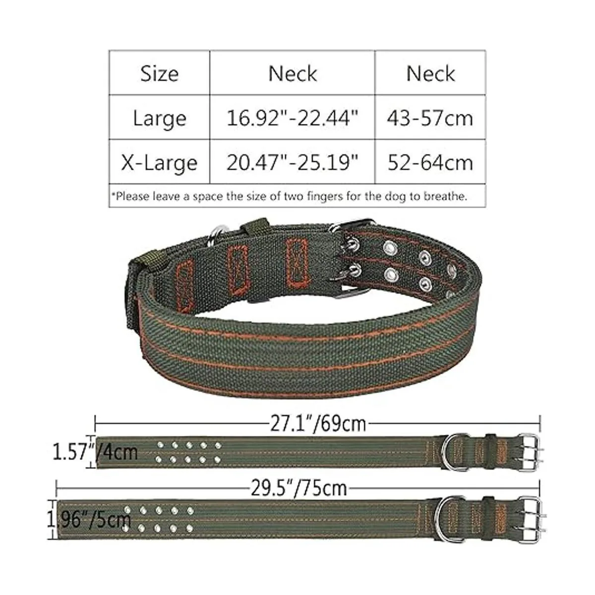 Diseño ajustable: este collar de perro resistente se puede ajustar de acuerdo con el tamaño del cuello de tu mascota. Hebilla de doble pin y tela de 4 capas de 0.236 in de grosor, durabilidad, resistente que dura mucho tiempo.