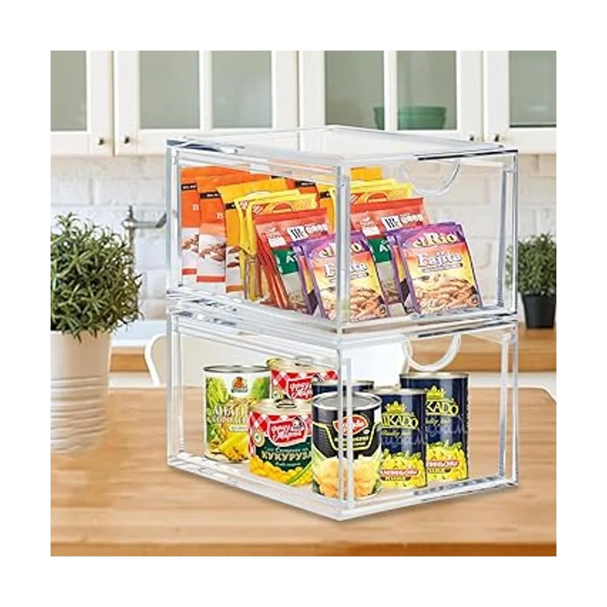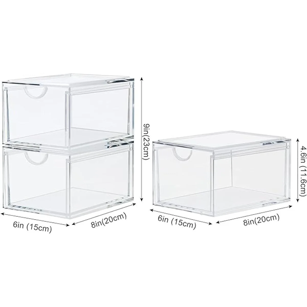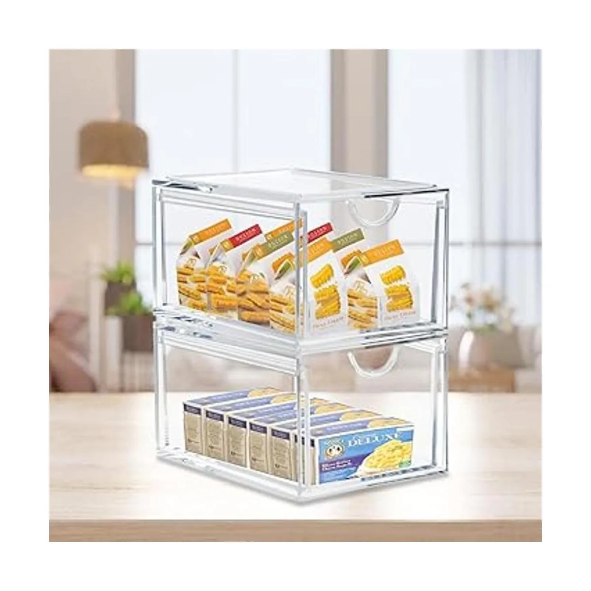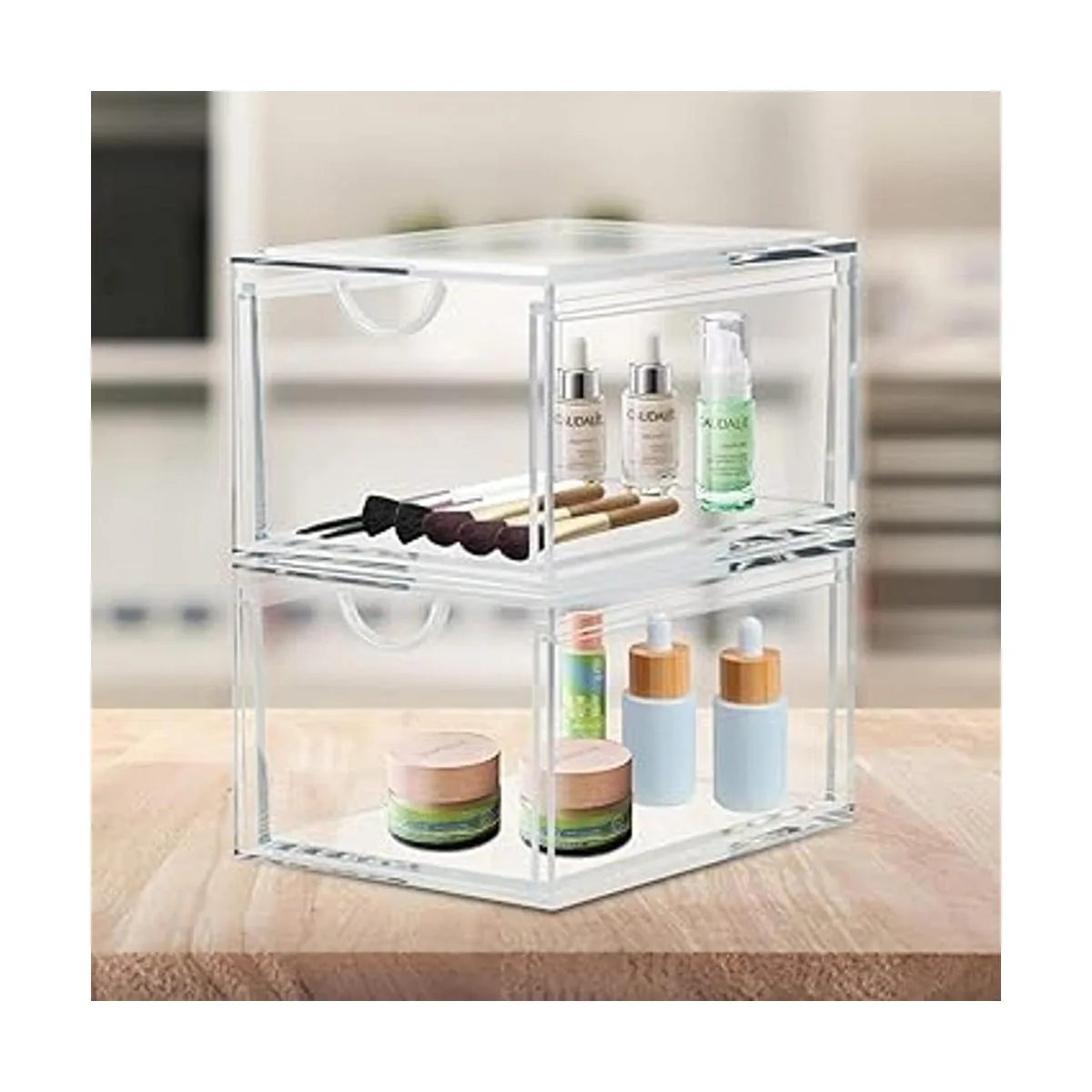 CECOLIC Paquete de 2 cajones organizadores de cosméticos apilables, caja organizadora de almacenamiento de maquillaje acrílico transparente, contenedores de almacenamiento de plástico para encimera de baño, tocador de dormitorio, gabinetes de cocina