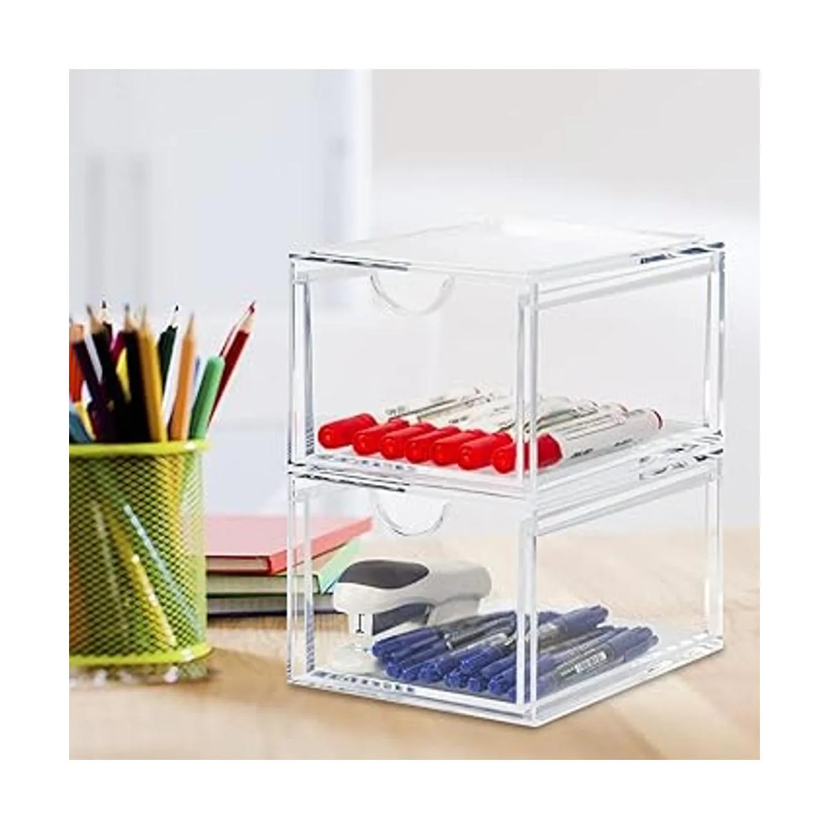 Gran capacidad: cada medida es de 6 x 8 x 4.6 pulgadas, nuestro cajón organizador acrílico puede contener muchos objetos pequeños, también se pueden utilizar para almacenar suministros de oficina, como bolígrafos, lápices, ceras, calculadoras, papel postit, clips de metal u otros artículos, hará que tu espacio de encimera esté ordenado.