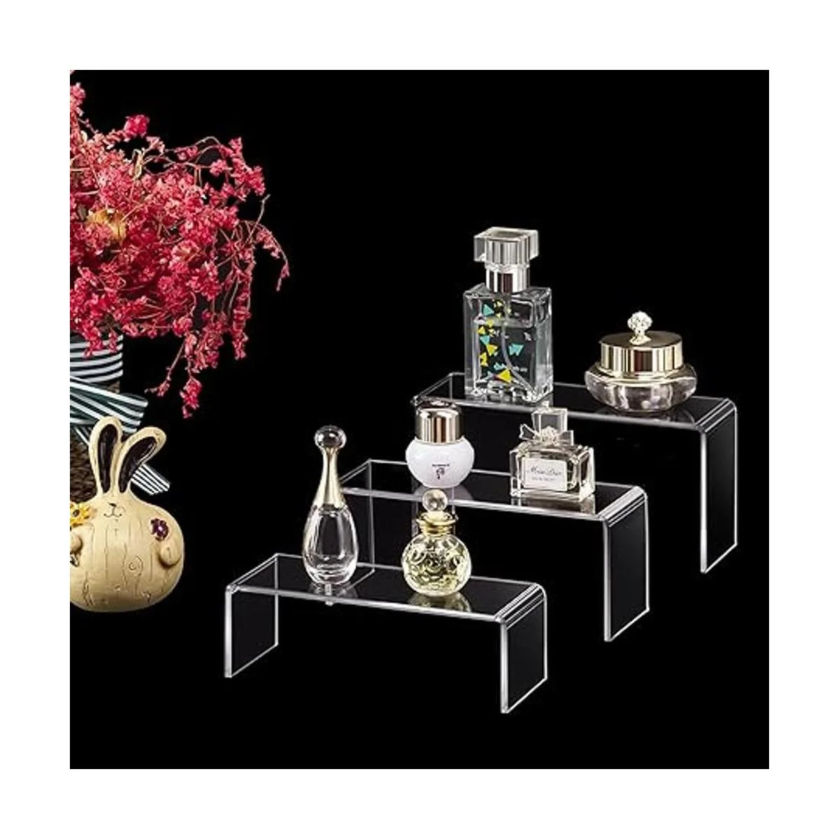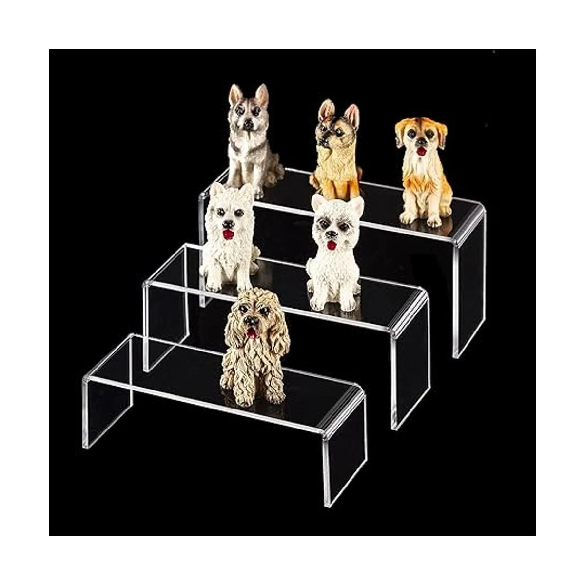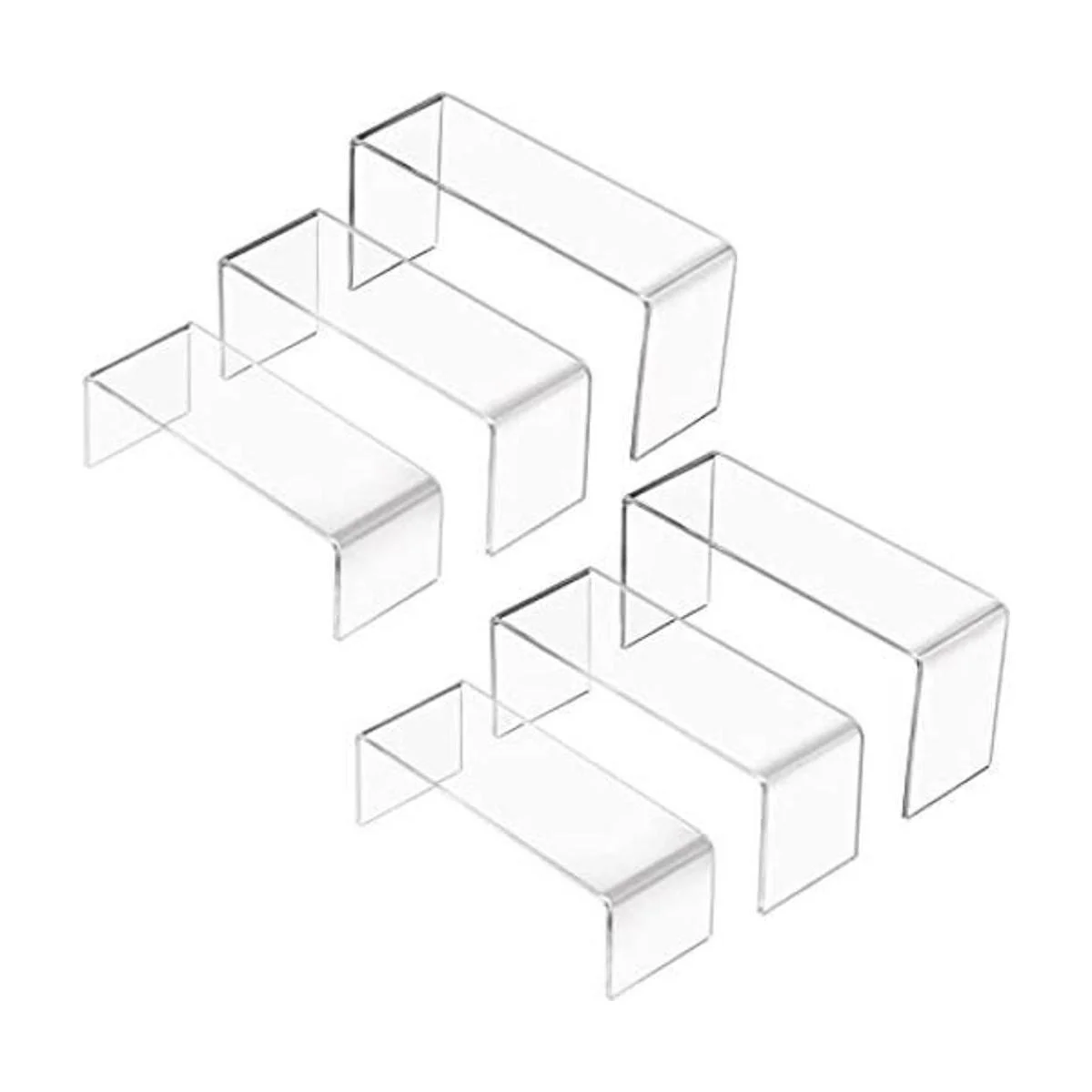 3 tamaños diferentes del juego de elevadores acrílicos Pequeño: 5.4 x 2.0 x 1.7 in, mediano: 5.7 x 2.3 in, grande: 6.0 x 2.1 x 2.9 in. También es ideal para mostrar cosméticos de maquillaje, joyas, artes y manualidades, etc.
