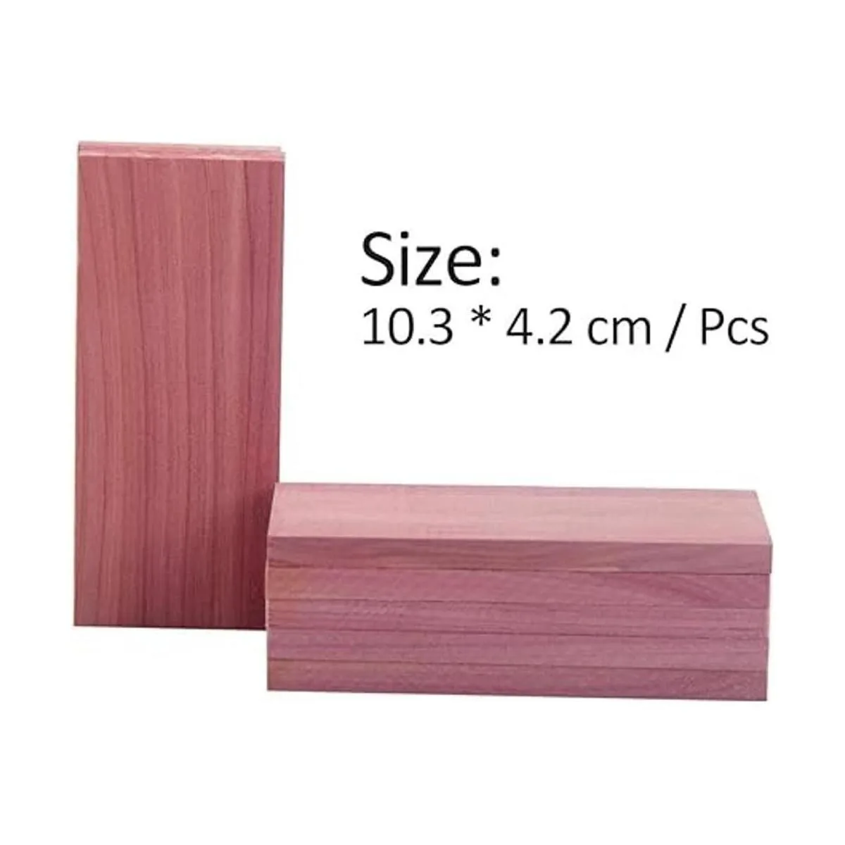 Fragancia fresca: el aroma fresco de cedro es de larga duración. Si el olor de los bloques de cedro se debilita, simplemente lija ligeramente los bloques de cedro, la fragancia se restaurará. La superficie de los bloques de cedro es lisa y no raya suéteres delicados ni ropa de lana incluso si se montan directamente. Por lo tanto, los bloques de cedro se pueden aplicar a la mayoría de almacenamiento de ropa.
