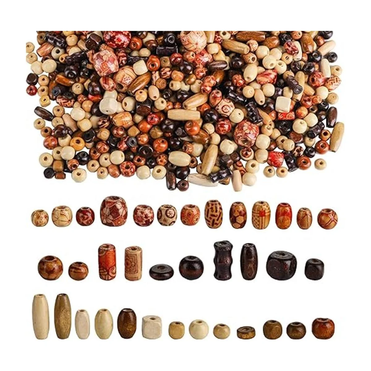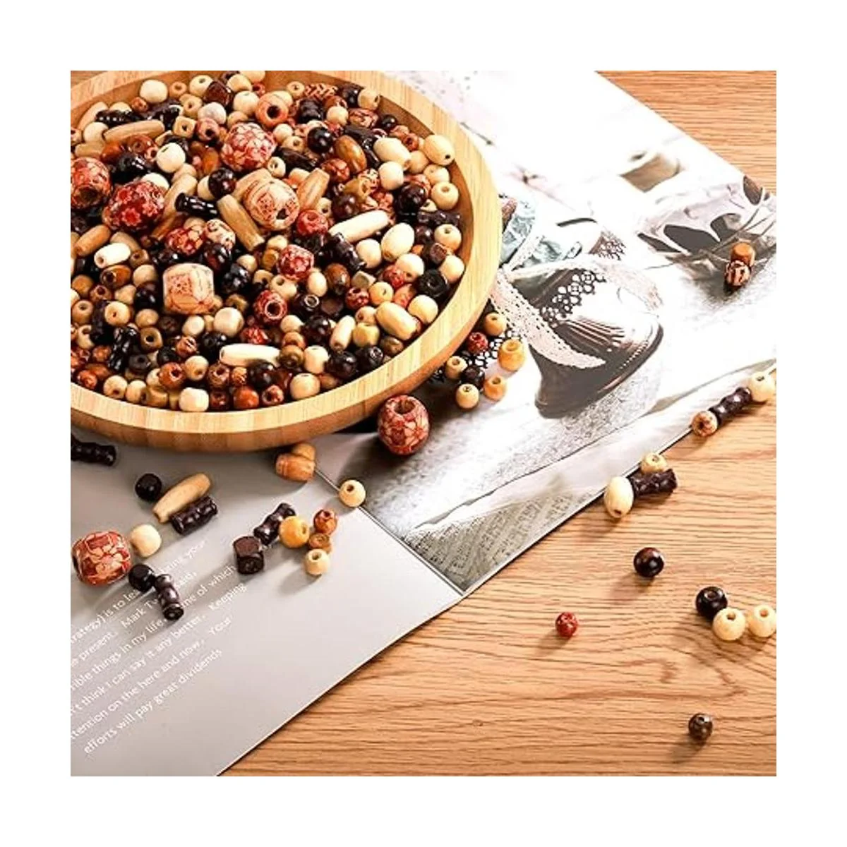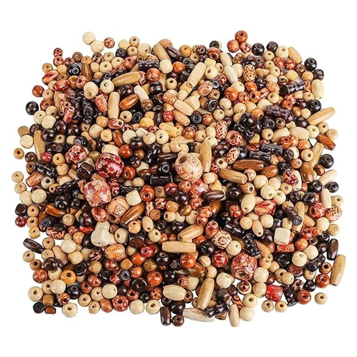 Incluye 2000 cuentas de madera impresas y cuentas de madera natural en varias formas y tamaños. Suministros únicos de cuentas de macramé para un aspecto bohemio natural.