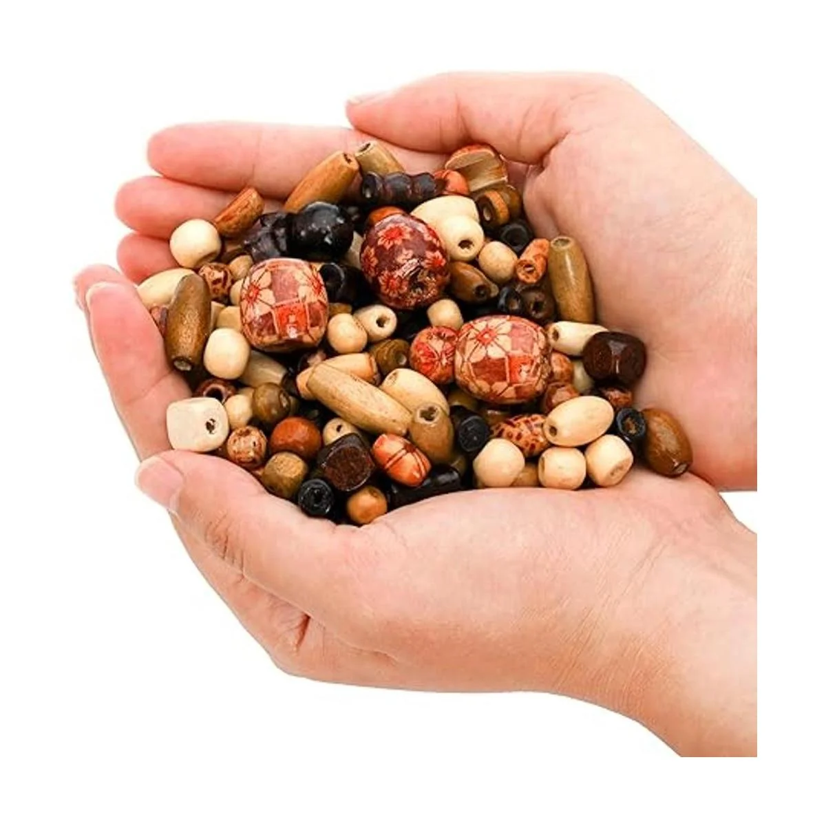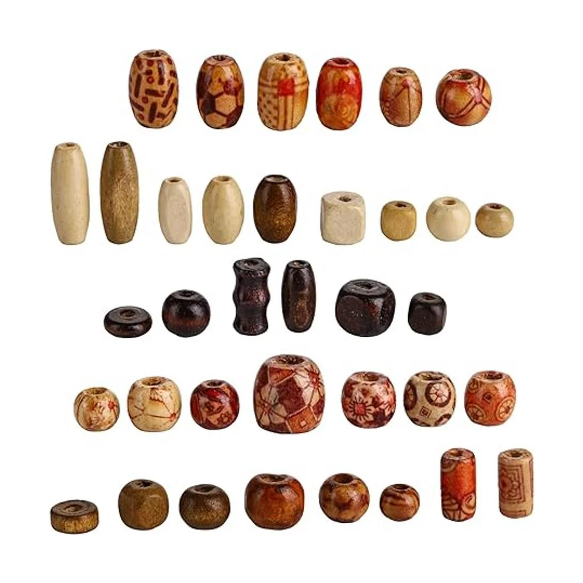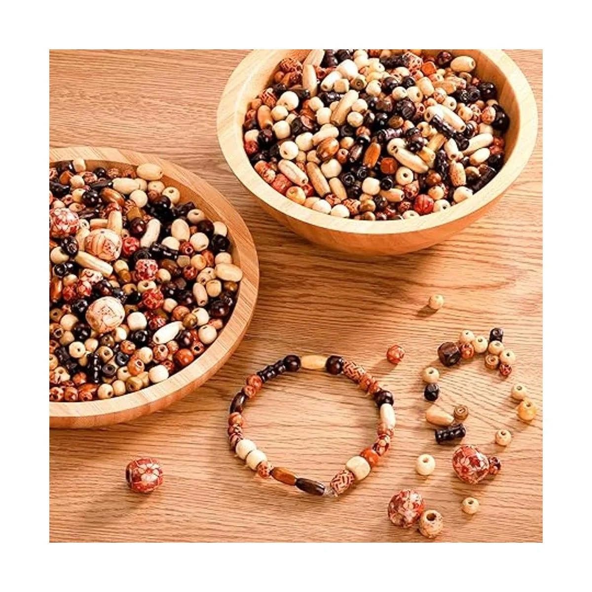 Incluye 2000 cuentas de madera impresas y cuentas de madera natural en varias formas y tamaños. Suministros únicos de cuentas de macramé para un aspecto bohemio natural.