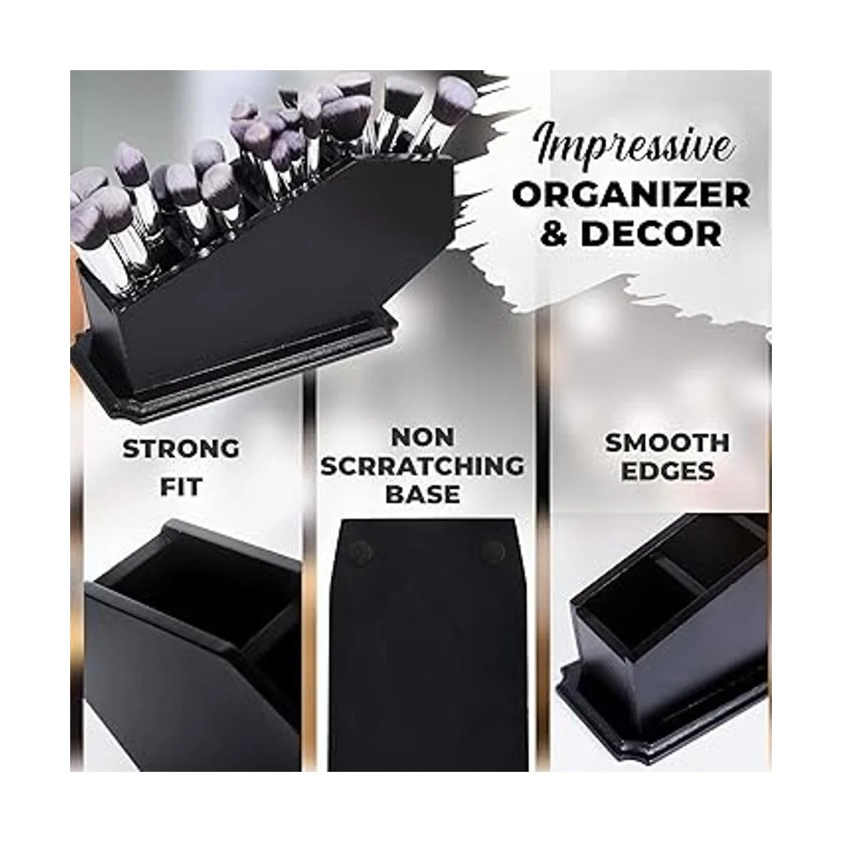 Gran capacidad: el práctico y elegante organizador de maquillaje gótico para decoración del hogar tiene cuatro compartimentos y se coloca sobre una base elegante. El soporte para brochas tiene capacidad para una impresionante cantidad de brochas de maquillaje, herramientas y otros cosméticos y accesorios góticos.