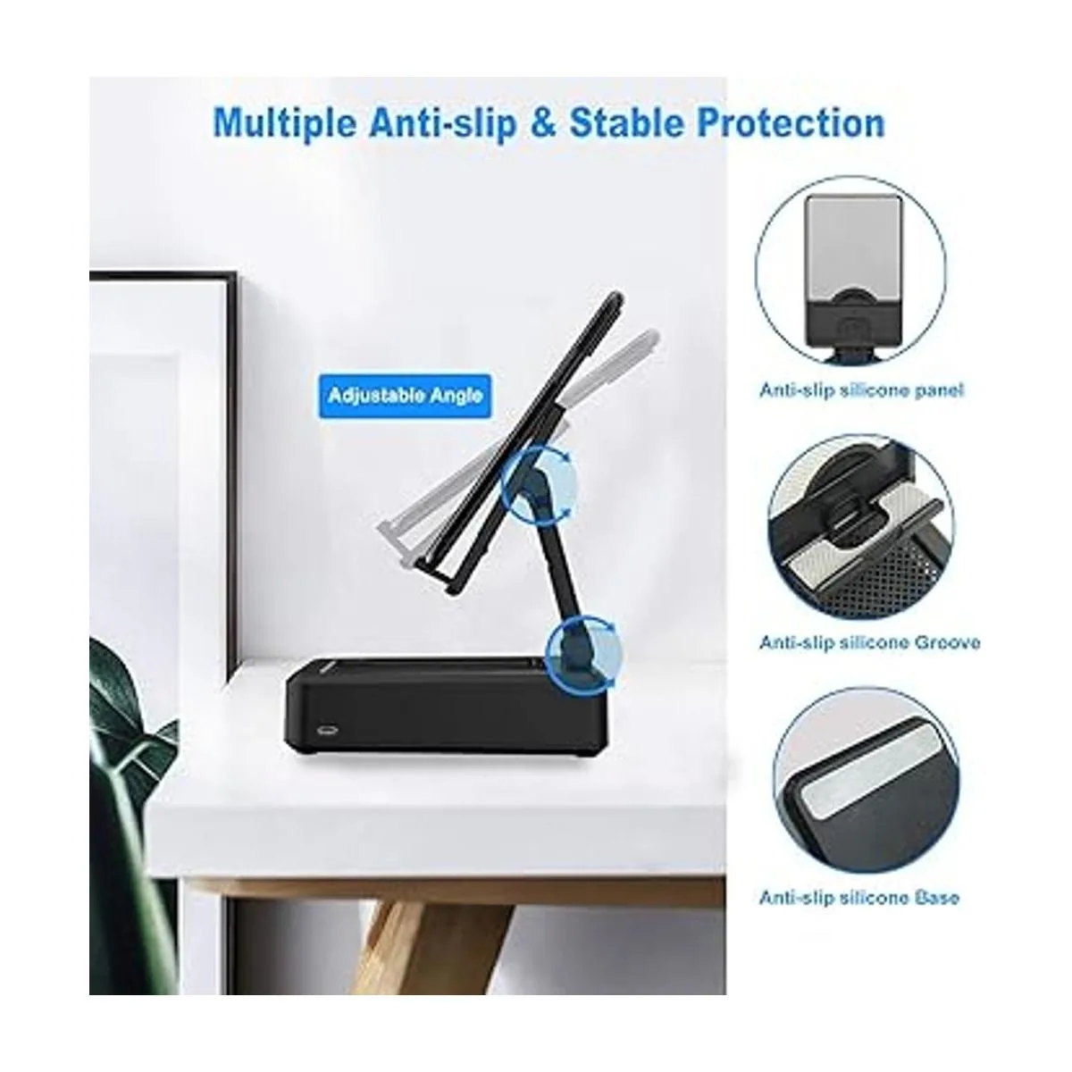 Stable and NonSlip: The pad back and the bottom of this cell phone stand are fully covered by antiskid silicone, which can provide maximum protection for your device from any scratches and slide.