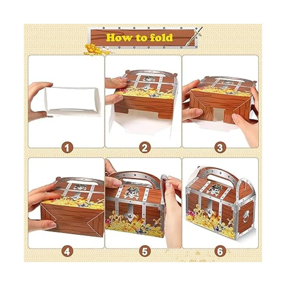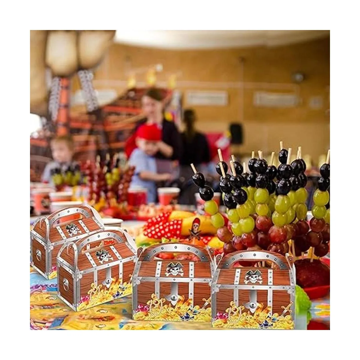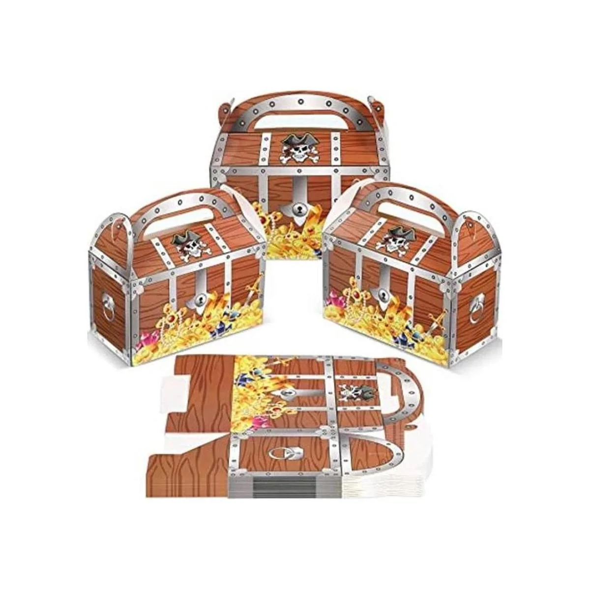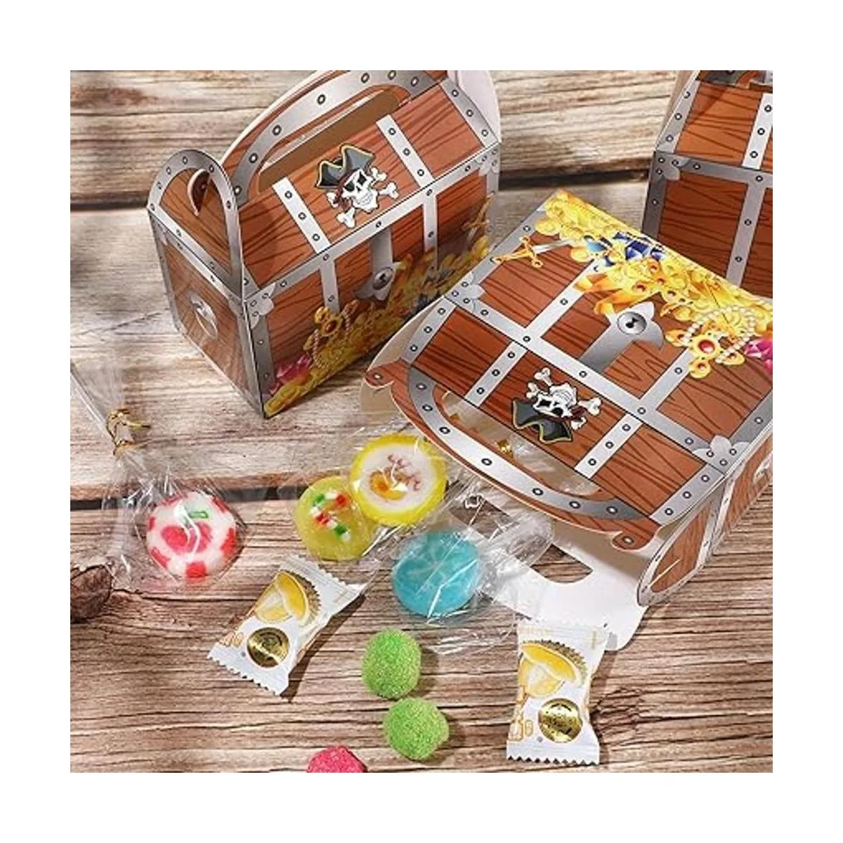 Material de calidad: estas cajas de cofre piratas están hechas de papel en acabado brillante, no se decolora la tinta y no son tóxicas, seguras e insípidas, puedes llenarlas como regalo para niños y niñas, lo que traerá alegría a tus invitados