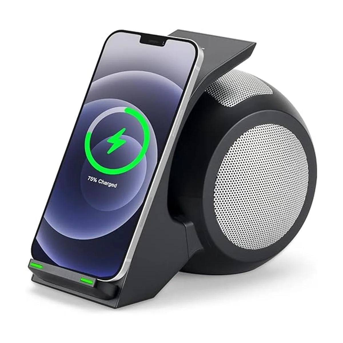 CENSHI Cargador inalámbrico rápido con altavoz Bluetooth, soporte de teléfono de carga inalámbrica para iPhone 14, 13, 12, 11 Pro Max XR XS 8 Plus Samsung Galaxy S21, S20, Note 20, 10, Google, LG, etc. Smartphone habilitado para Qi
