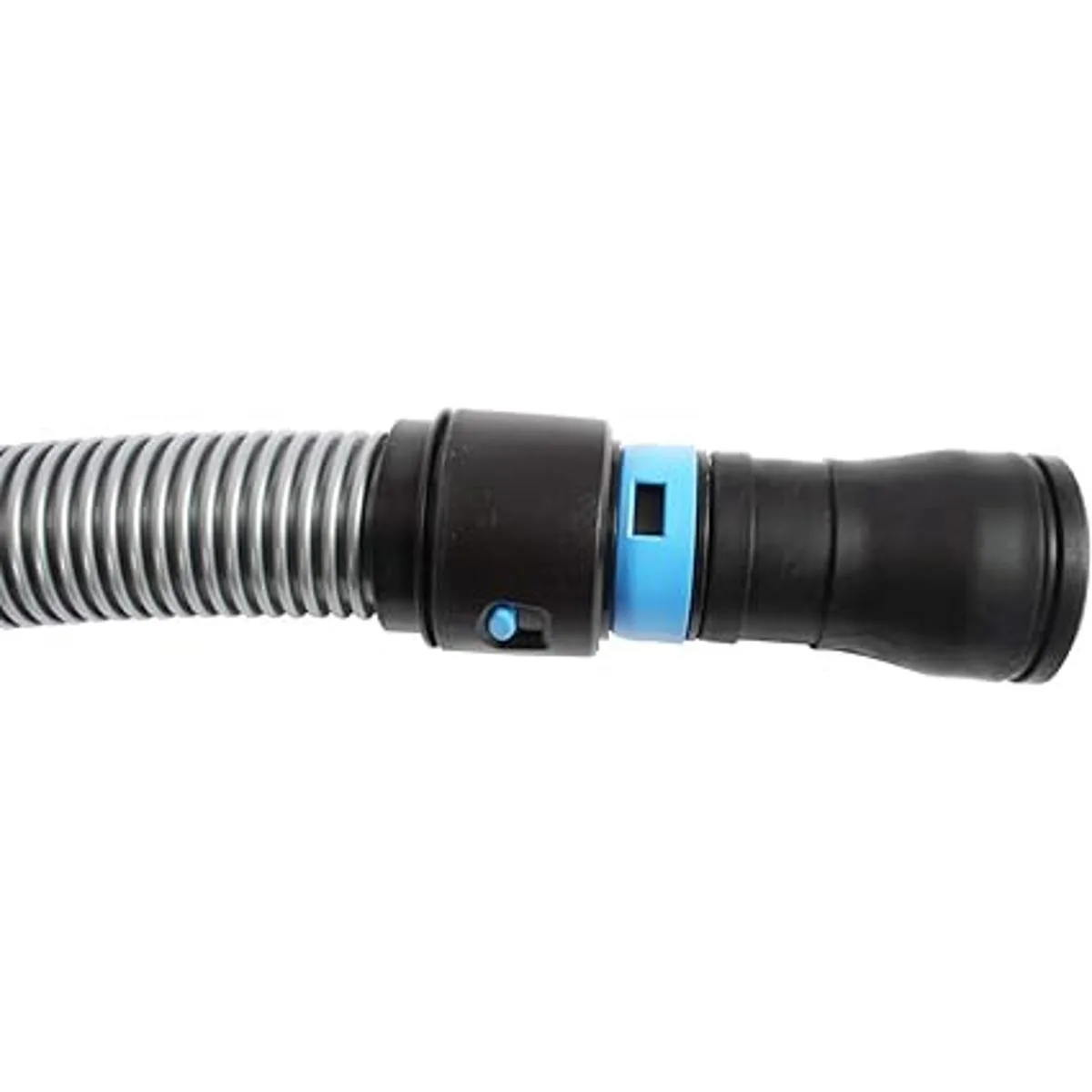 Viene con sistema de clic rápido para conectar al puerto de escape en todas las principales marcas de herramientas eléctricas manuales y estacionarias. Un collar con anillo de clip y accesorios de bayoneta con ajuste TPE suave de 1.4 in 11/4 pulgadas están diseñados para aceptar y sostener puertos de escape diseñados para adaptarse a la manguera interna o externamente según lo requiera el diseño de herramientas eléctricas. Cambiar de un accesorio de extremo a otro toma unos segundos y ofrece una conexión giratoria suave de 360 grados para evitar que la manguera se retuerza o restrinja el movimiento de la herramienta eléctrica