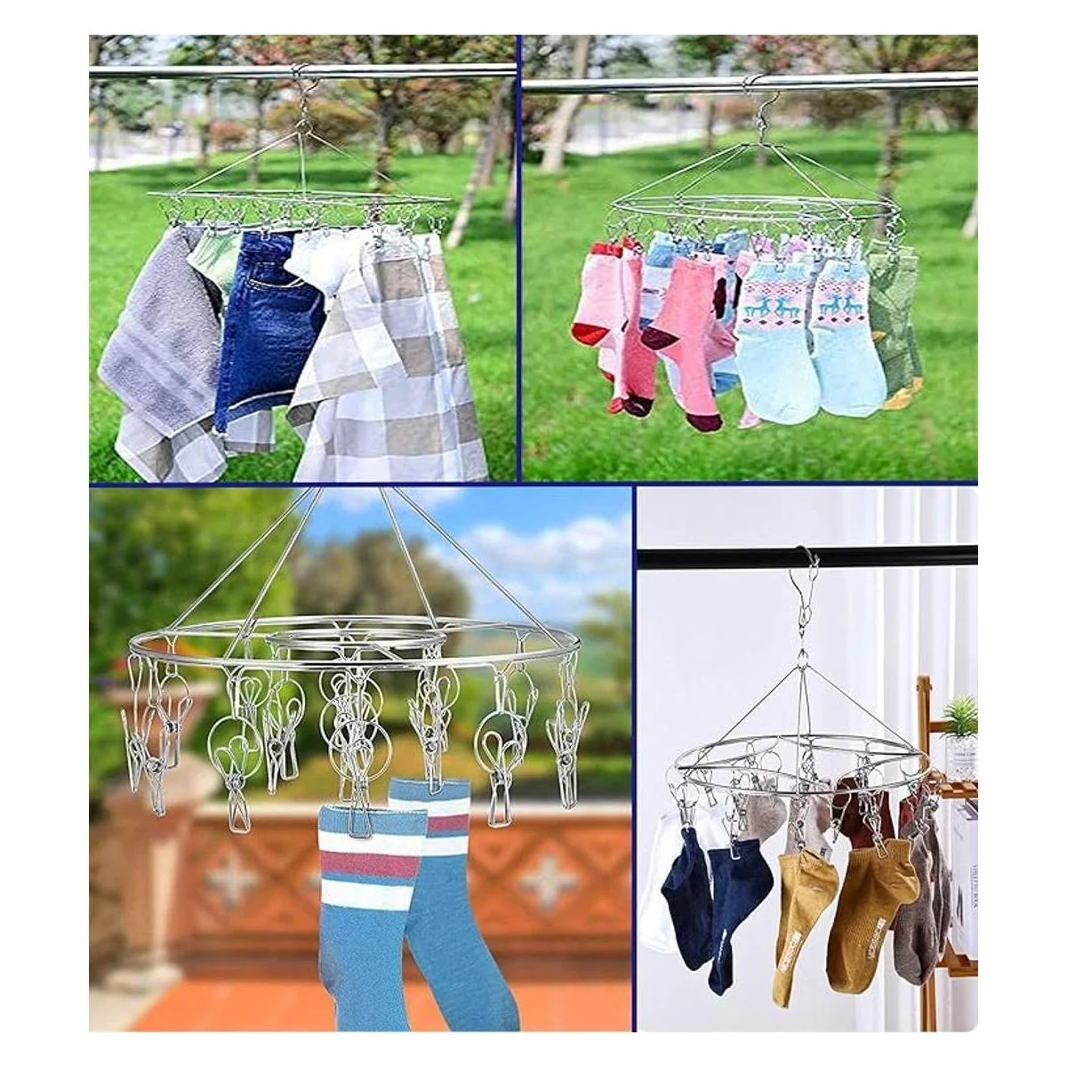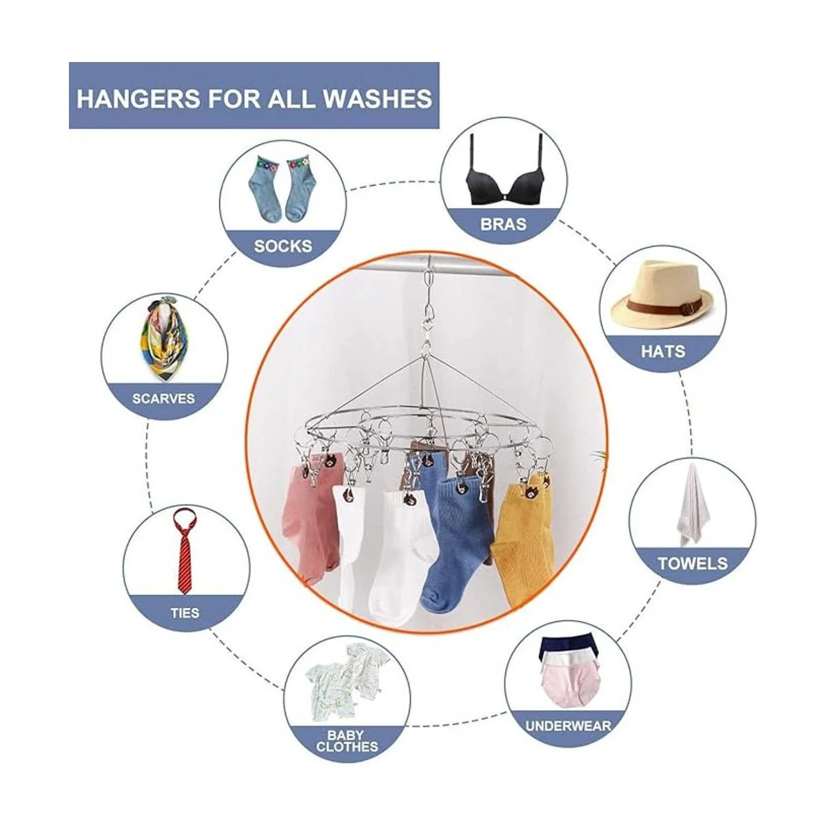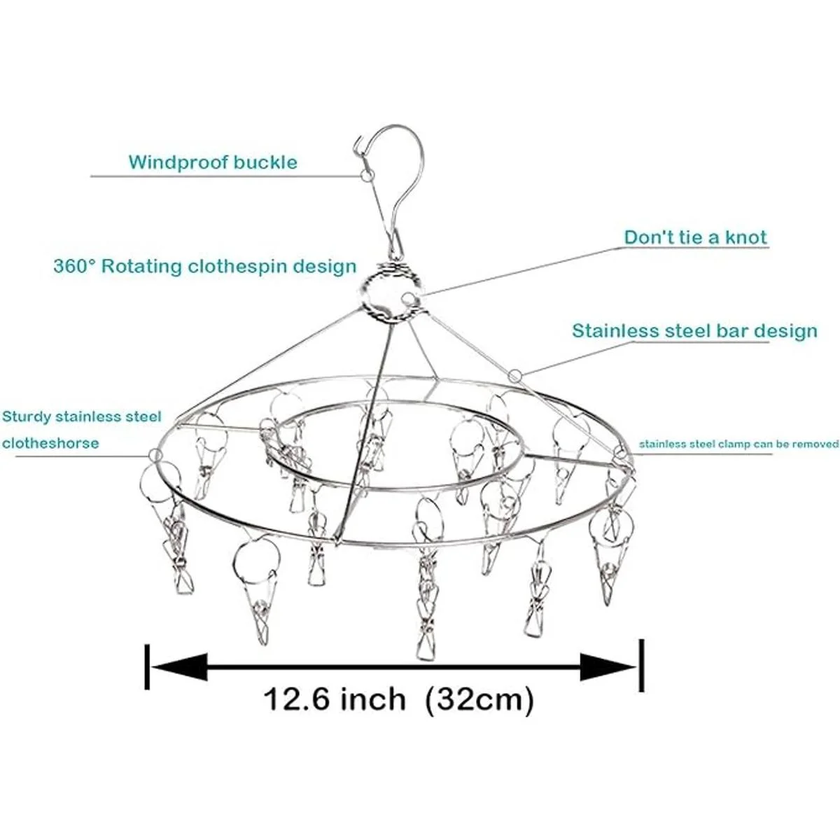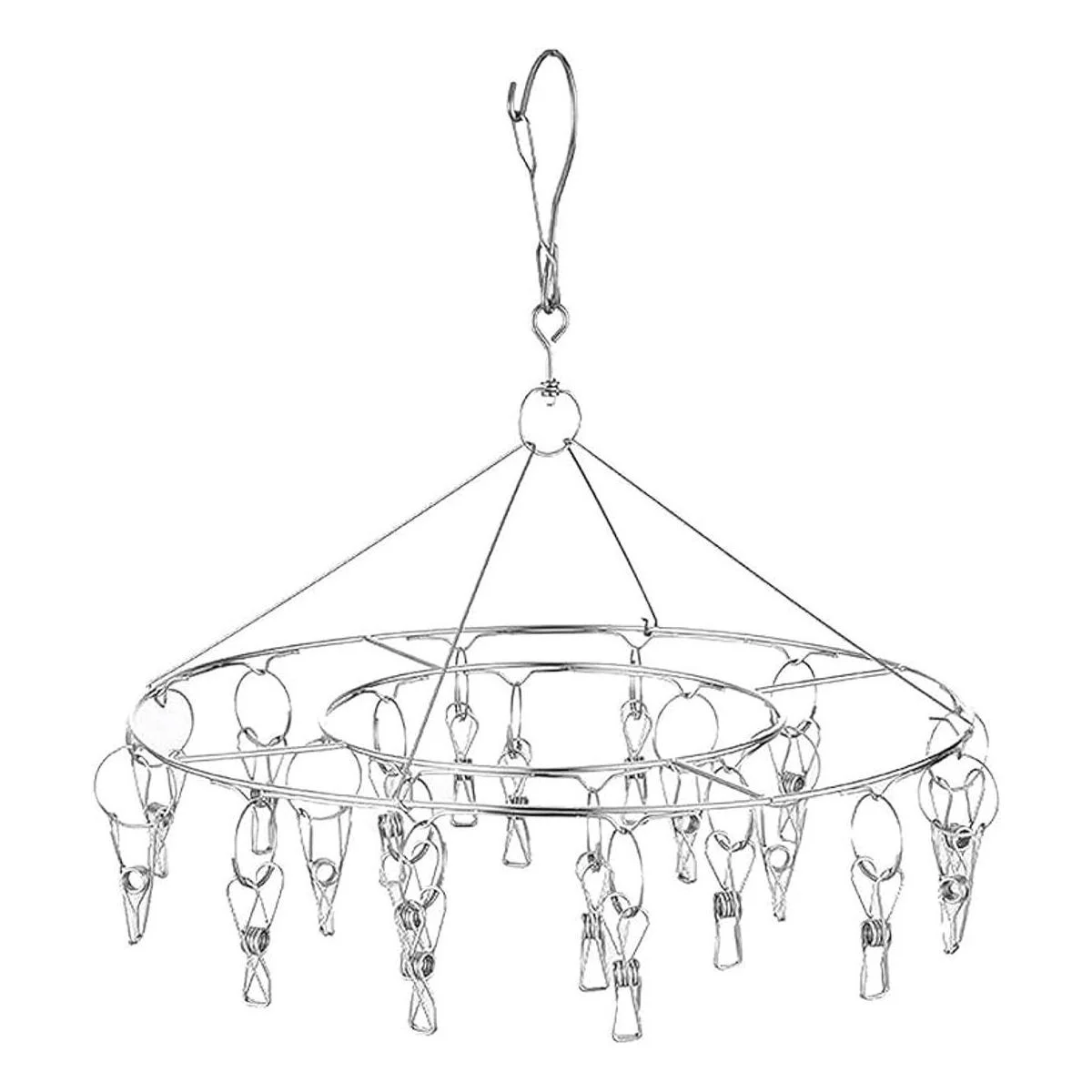 CenYouful Tendedero colgante redondo de acero inoxidable con 20 clips para secar calcetines, ropa de bebé, sujetadores, toalla, ropa interior, sombrero, bufanda, pantalones, guantes