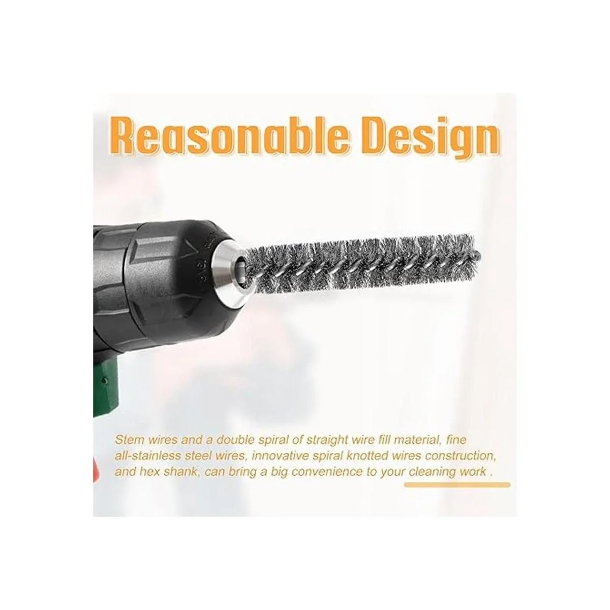 Diseño razonable: cuenta con cables de tallo y una doble espiral de material de relleno de alambre recto, cables finos de acero inoxidable, innovadora construcción de cables anudados en espiral y vástago hexagonal, el cepillo de alambre de cerdas de acero inoxidable puede traer una gran comodidad a tu trabajo de limpieza