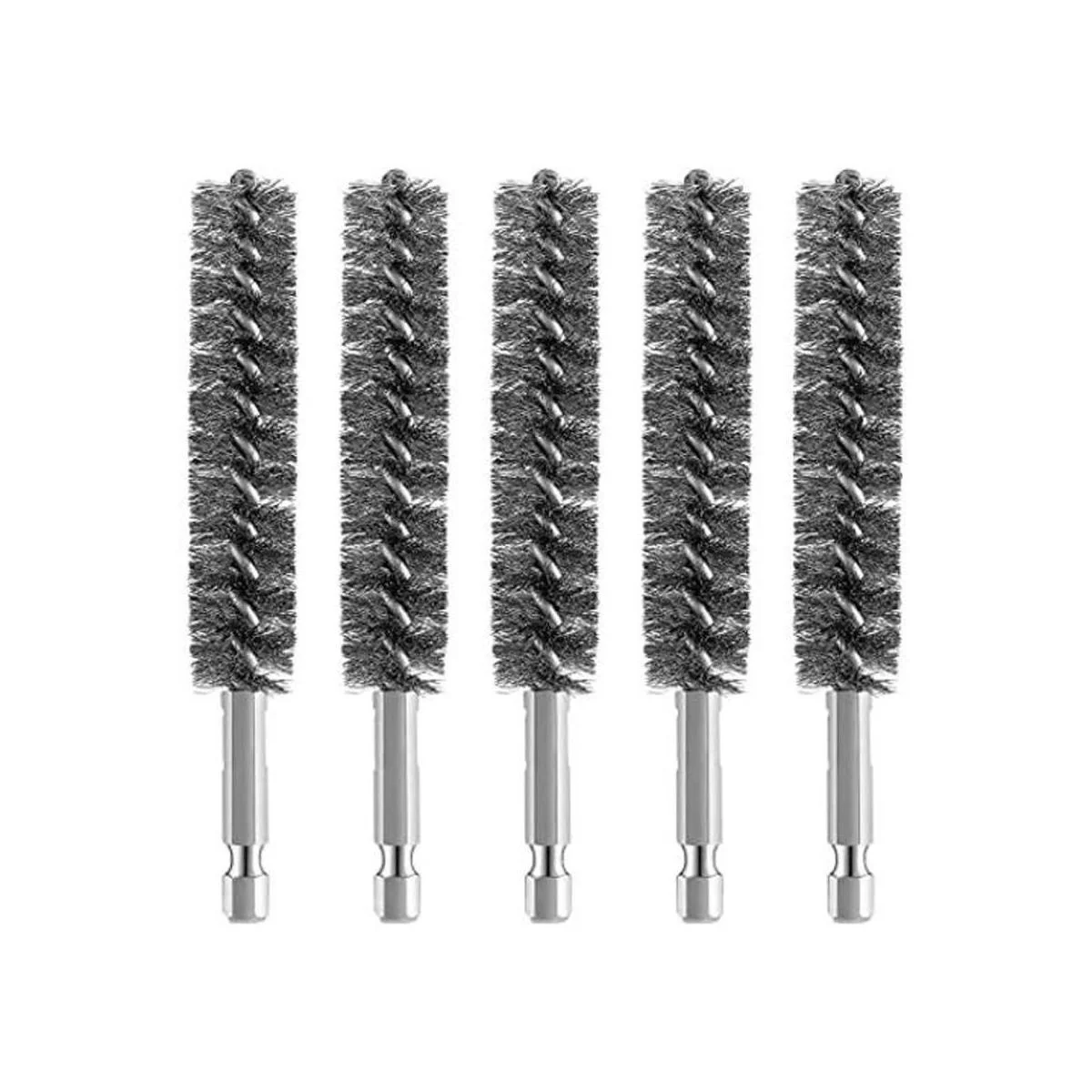 Cepillo de acero inoxidable con orificio de cerdas de acero inoxidable para taladro eléctrico, cepillo de alambre de limpieza de acero inoxidable con mango hexagonal 5 piezas