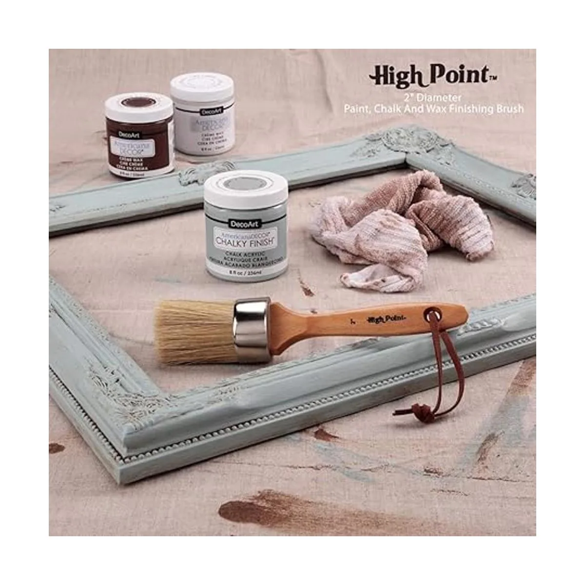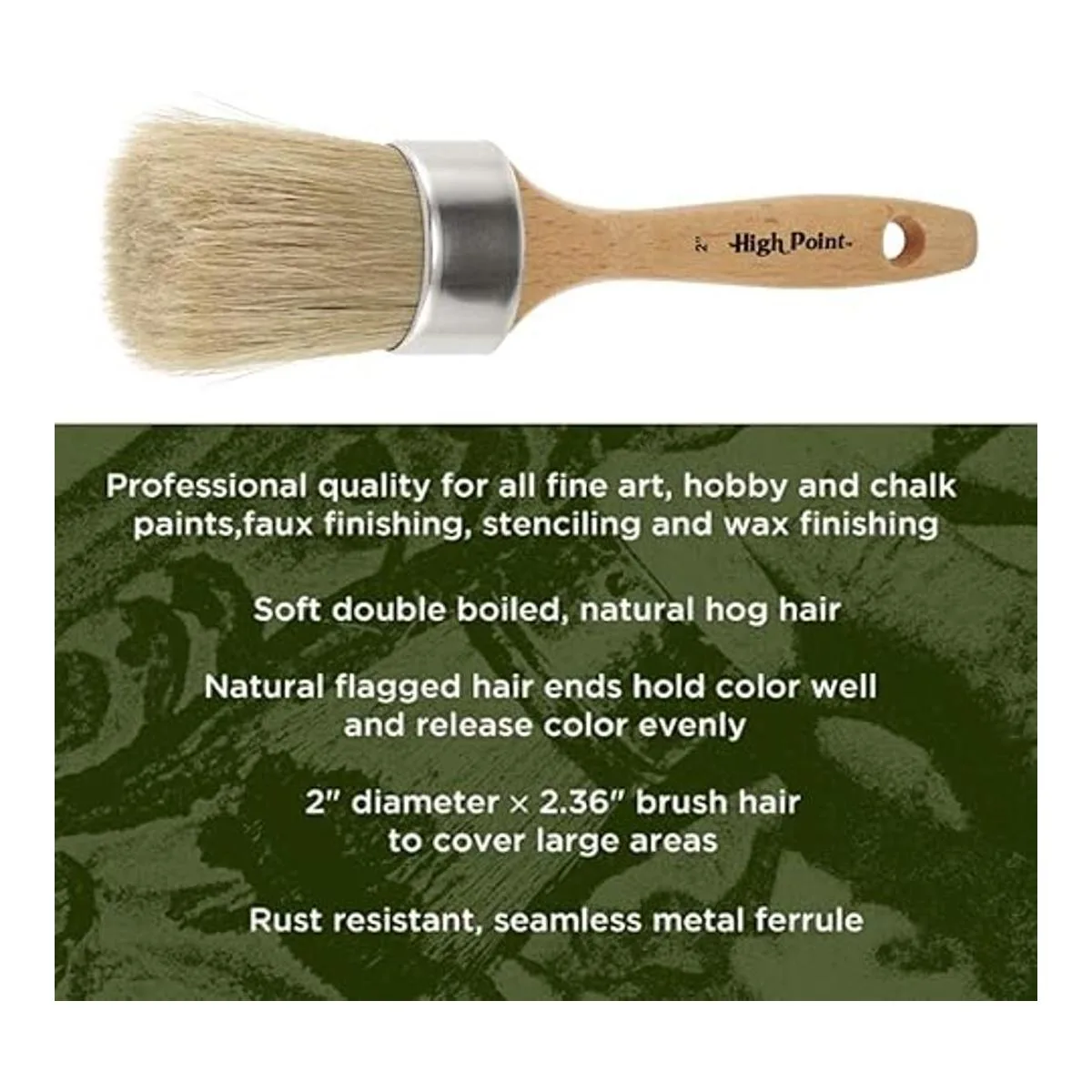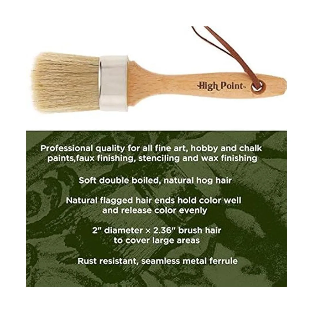 Cepillo redondo grande 2 en 1 para acabado de tiza y cera, con mango ergonómico y pincel para manualidades, para decoración de manualidades, pintura de pasatiempos, acabado de imitación y cera, plantilla [2.0 x 2.3 in)