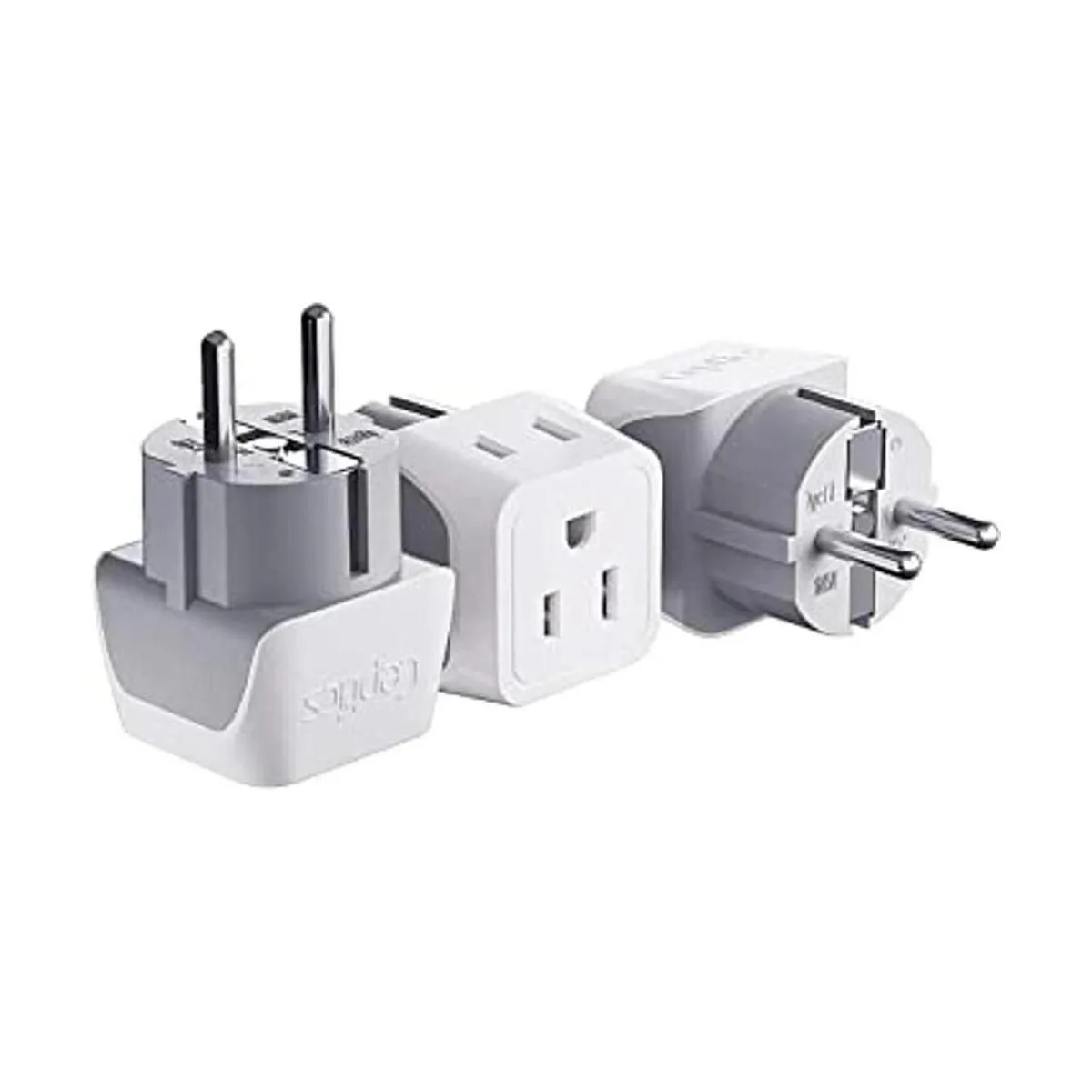 Ceptics Enchufe adaptador de viaje de Bélgica, Finlandia, España, tipo EF Europeo 2 en 1 Peso ligero, perfecto para teléfonos celulares, cargadores, cámaras y más paquete de 3