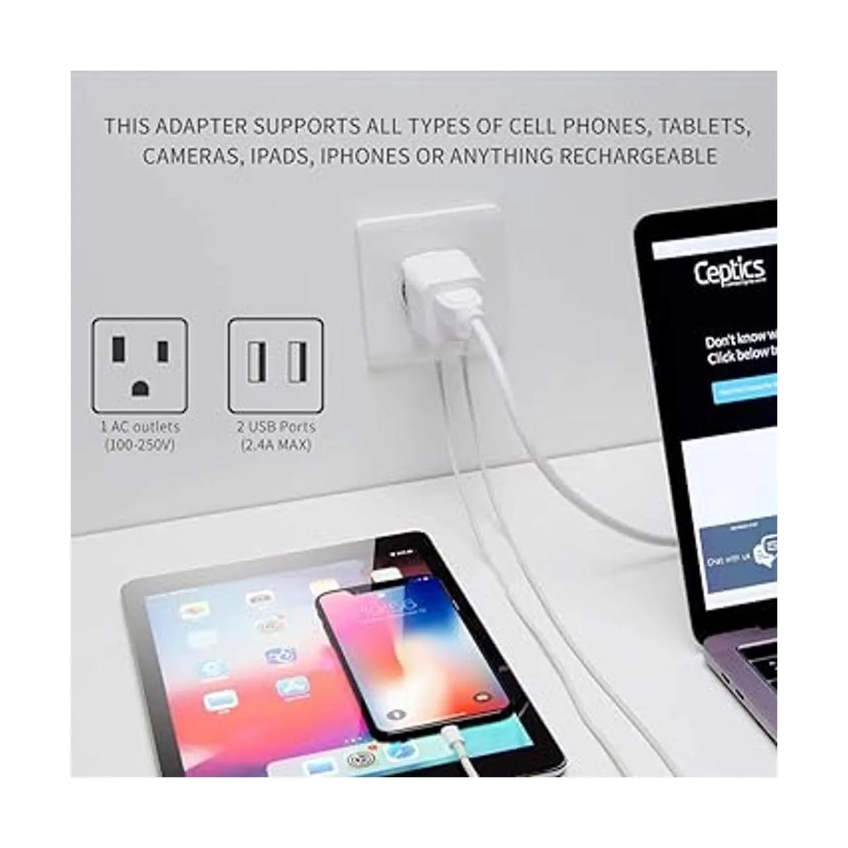 Entrada 3 en 1: acepta el enchufe estándar N American de 2 o 3 clavijas incluyendo polarizado Sin salida universal desordenada cargas USB duales hasta 2. 4A ideal para iPhone, iPad, Galaxy y otros cargadores