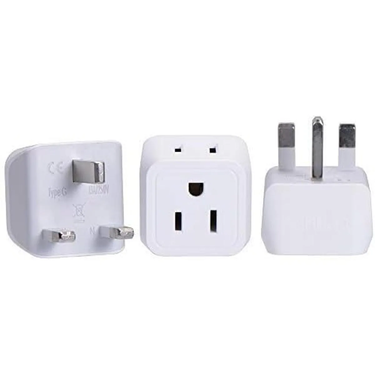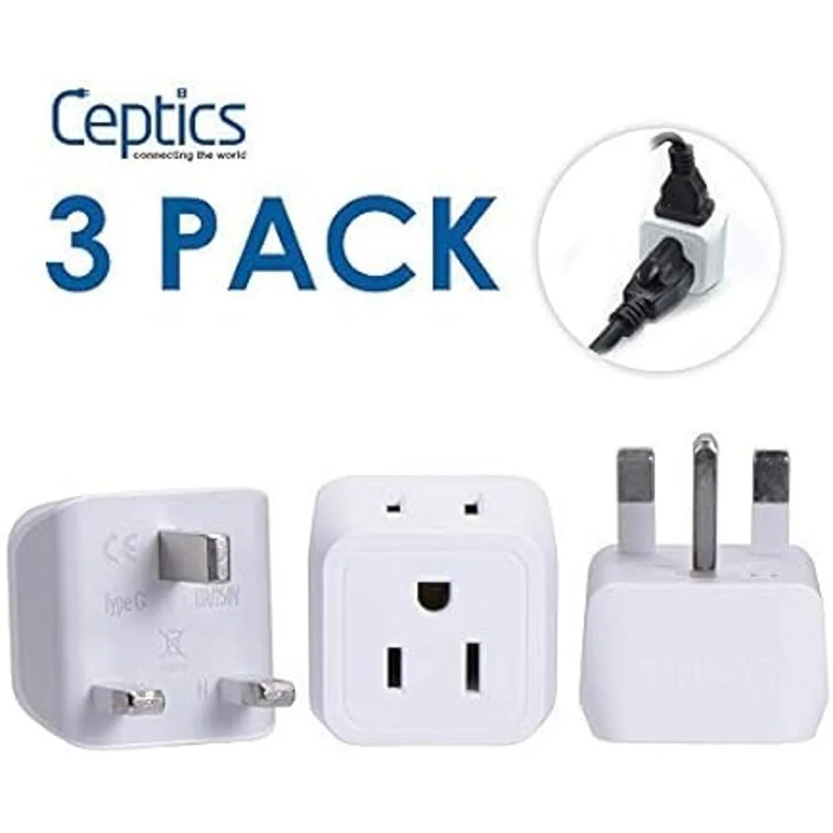 Ceptics Enchufe adaptador de viaje para Reino Unido, Hong Kong, Irlanda Peso ligero Entradas duales de Estados Unidos Tipo G Base segura perfecta para teléfonos móviles, portátiles, cámara 3 unidades Ultra compacto Uso en Dubai, Ghana