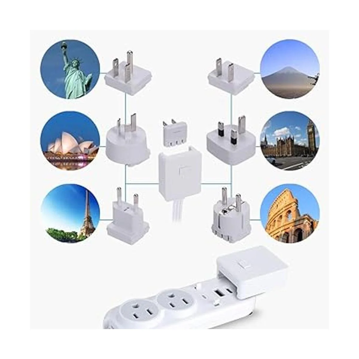 Nota: Este adaptador de viaje es compatible solo con productos y electrónica de doble voltaje. No funciona con artículos de 110 V como cortapelos, máquinas CPAP, secadores de pelo y rizadores, etc. No es un convertidor de voltaje y no convertirá voltaje de 220 V a 110 V o viceversa. Ten en cuenta que este juego de adaptadores de viaje no incluye enchufe adaptador para Sudáfrica.