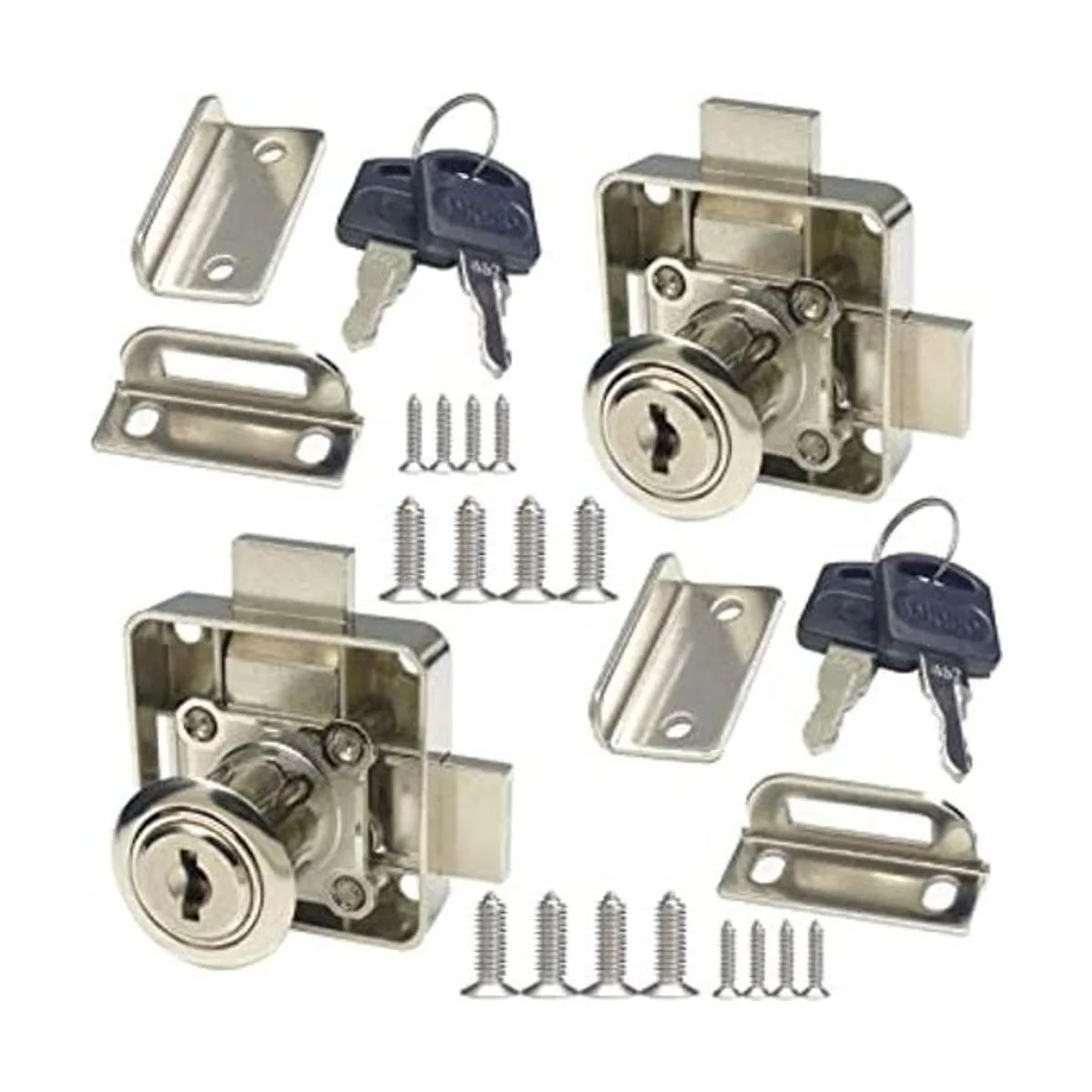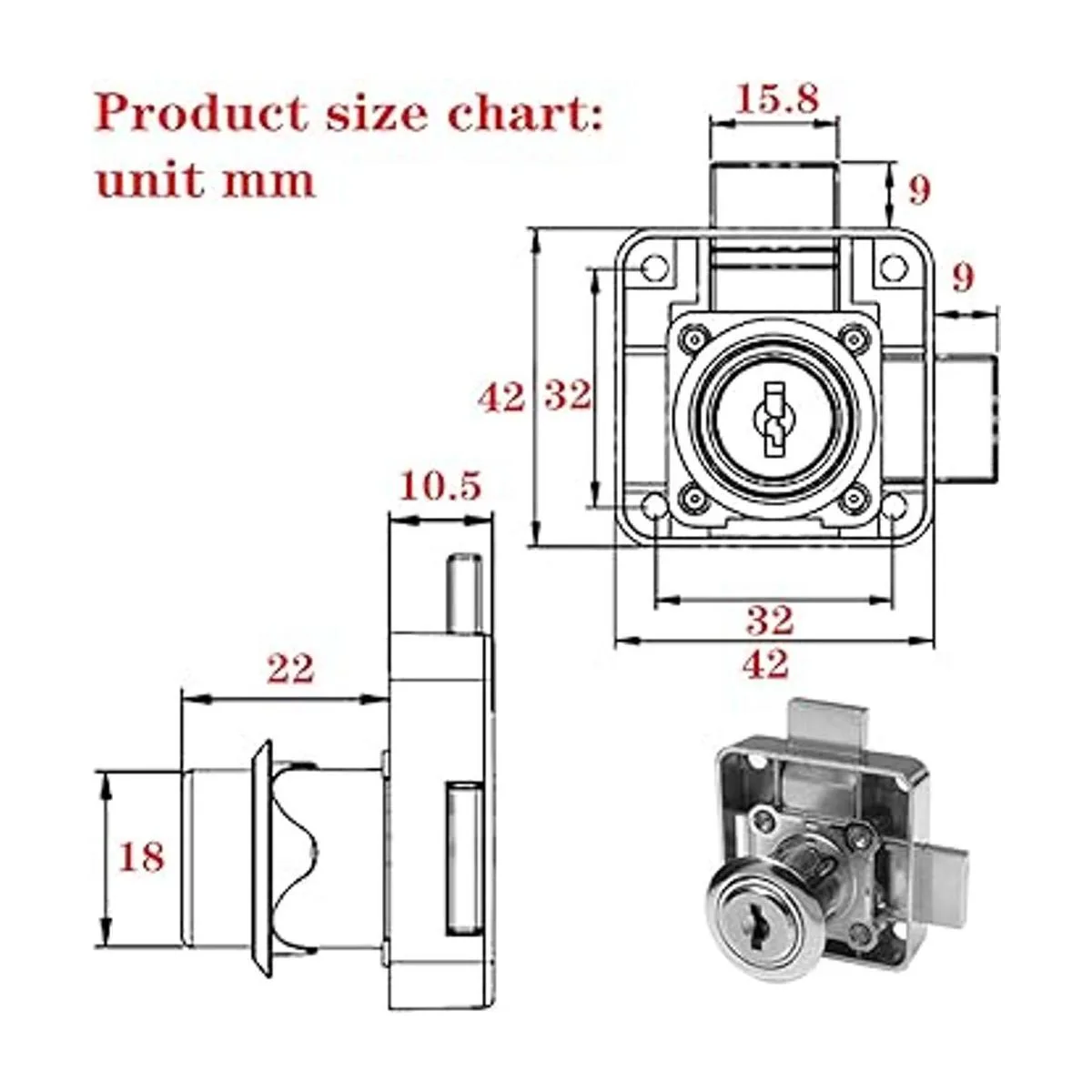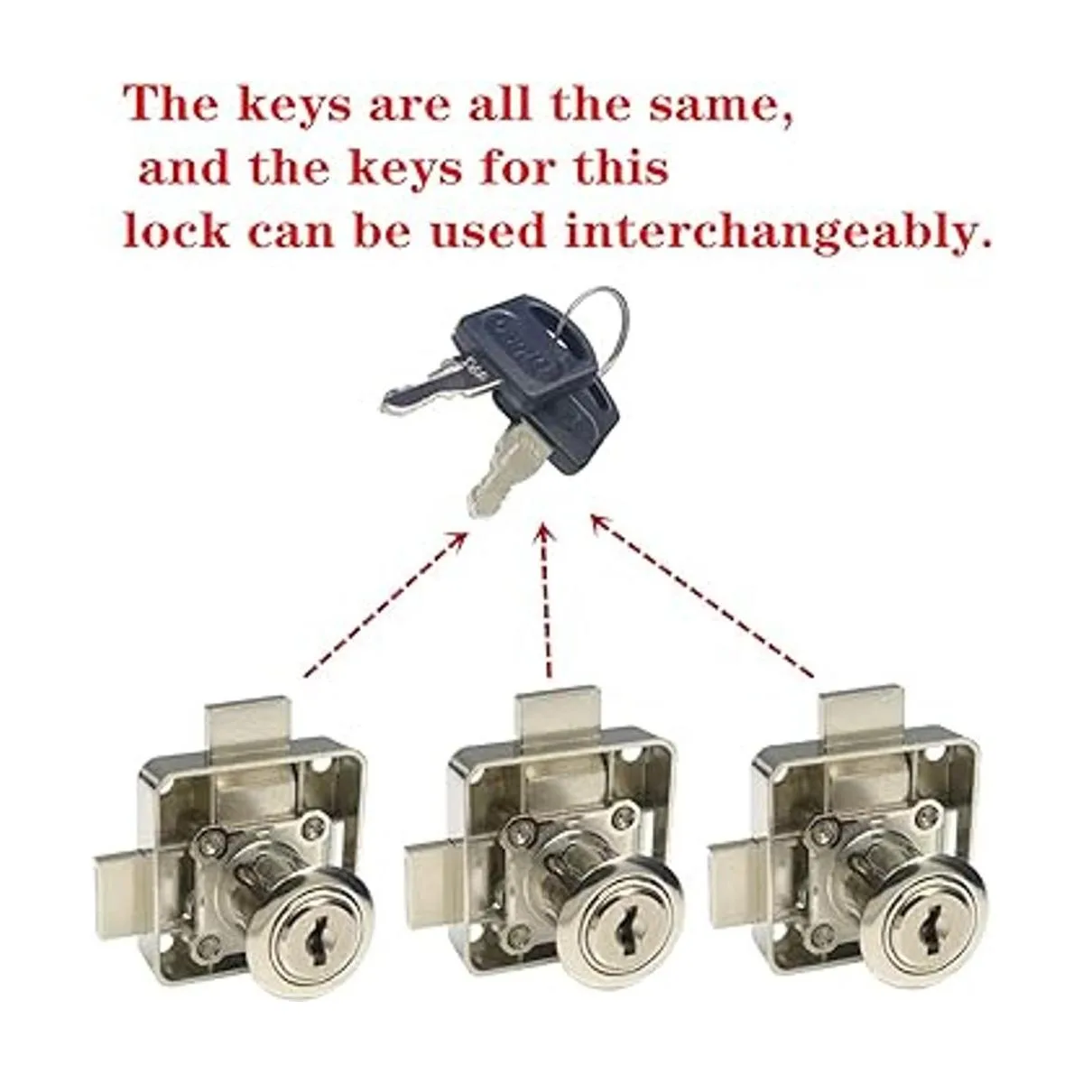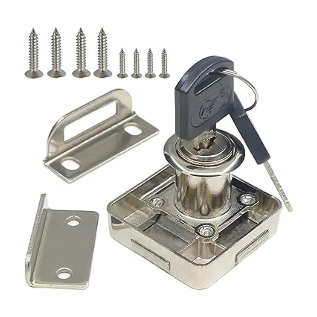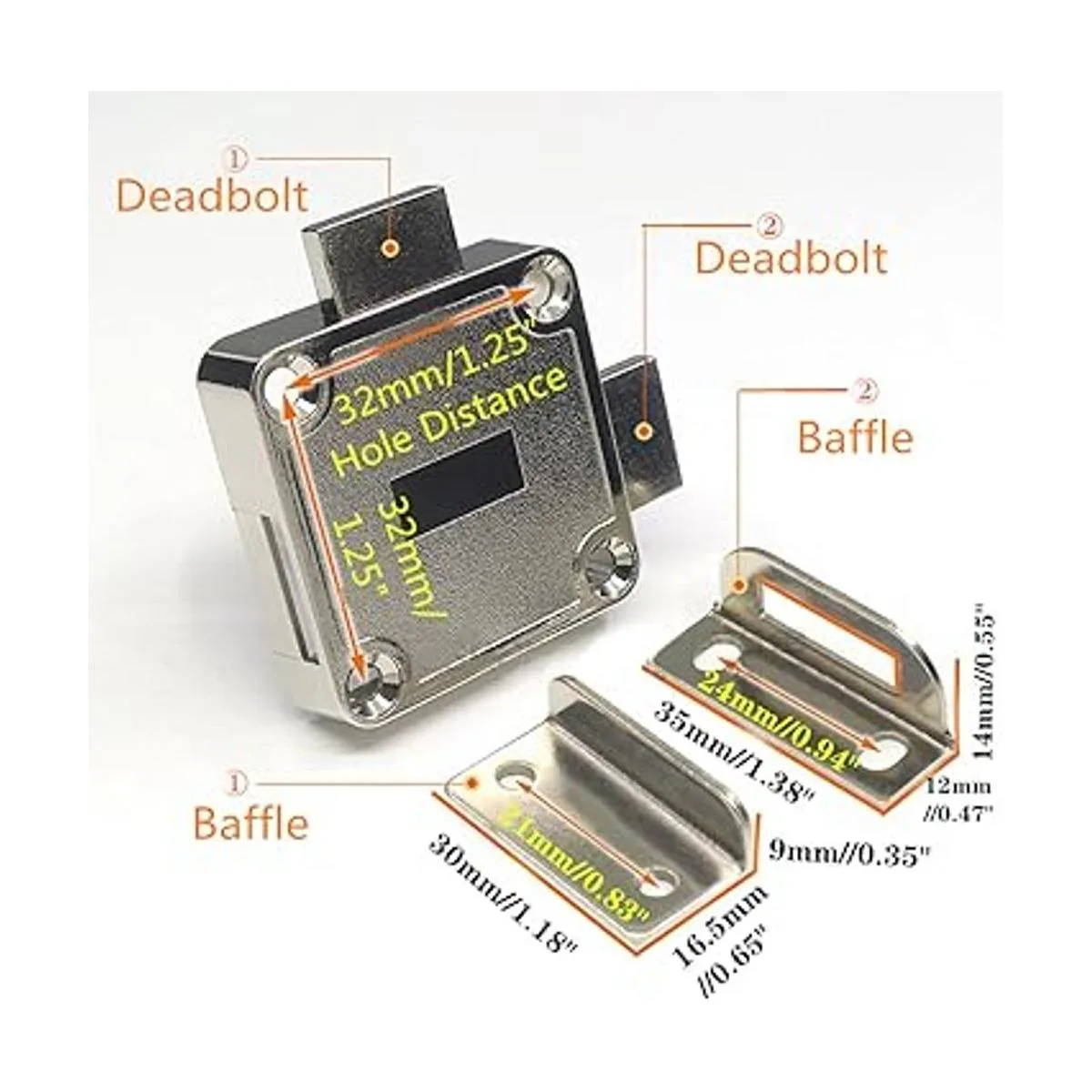 3: Cerradura de gabinete: es adecuada para escritorios, armarios, cajones, armarios, escritorios, buzones, cajas de joyería, armarios de madera para el hogar, etc., con una amplia gama de usos. Esta cerradura de puerta tiene una palanca de doble bloqueo. El kit incluye una placa de golpe resistente, anillo de moldura y todos los accesorios de montaje