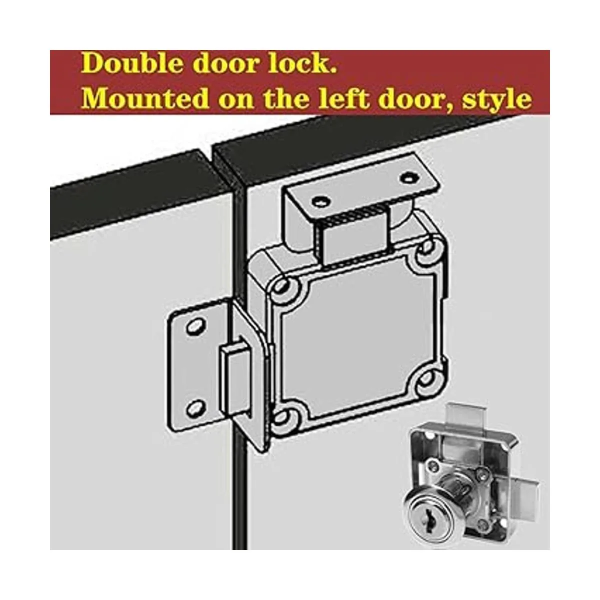Cerradura de gabinete de doble puerta con llave igual Cerradura de puerta doble soporte de puerta lateral izquierda. Diámetro de perforación de 34 pulgadas0.748 in para panel de puerta 350.591 in 780.866 in paquete de 2