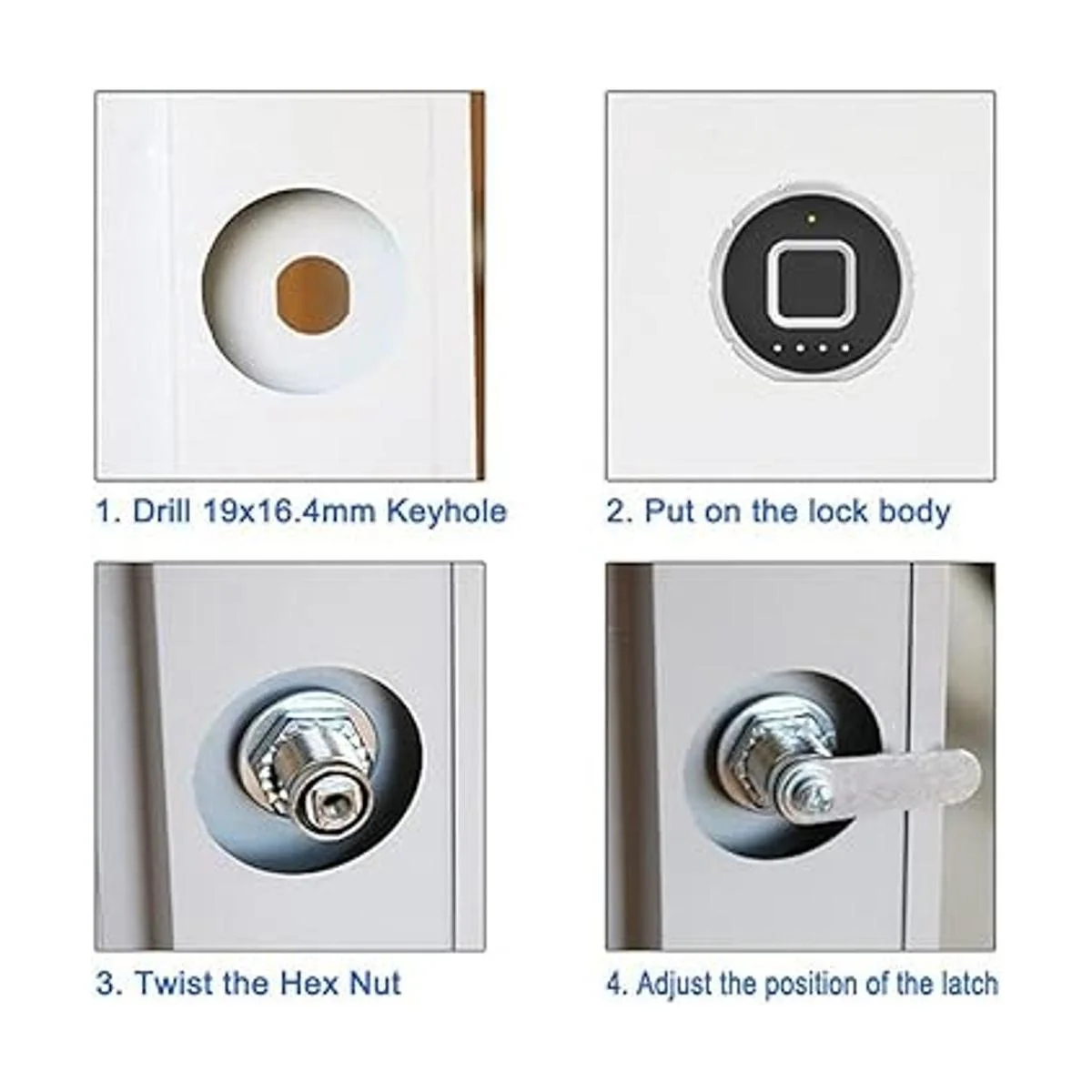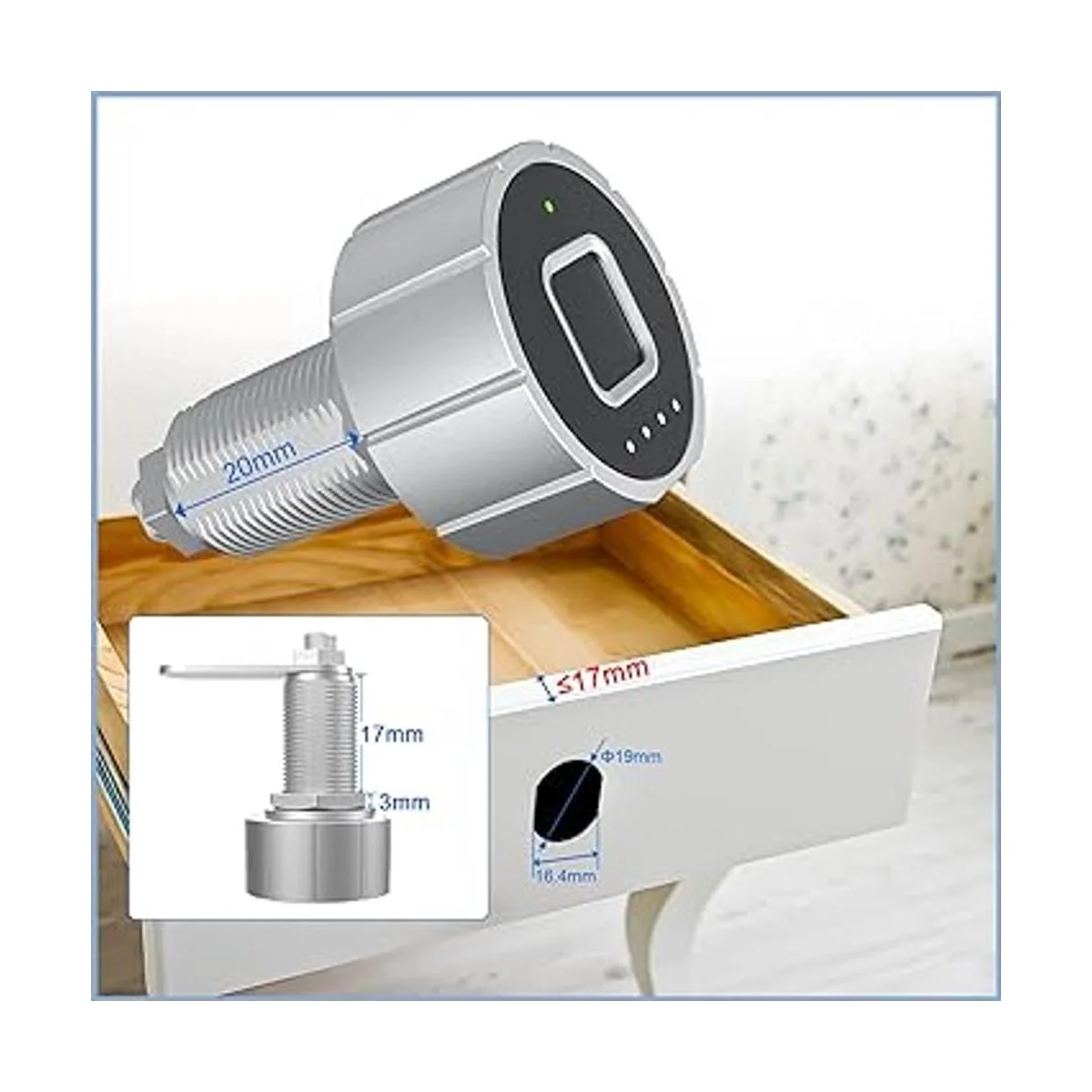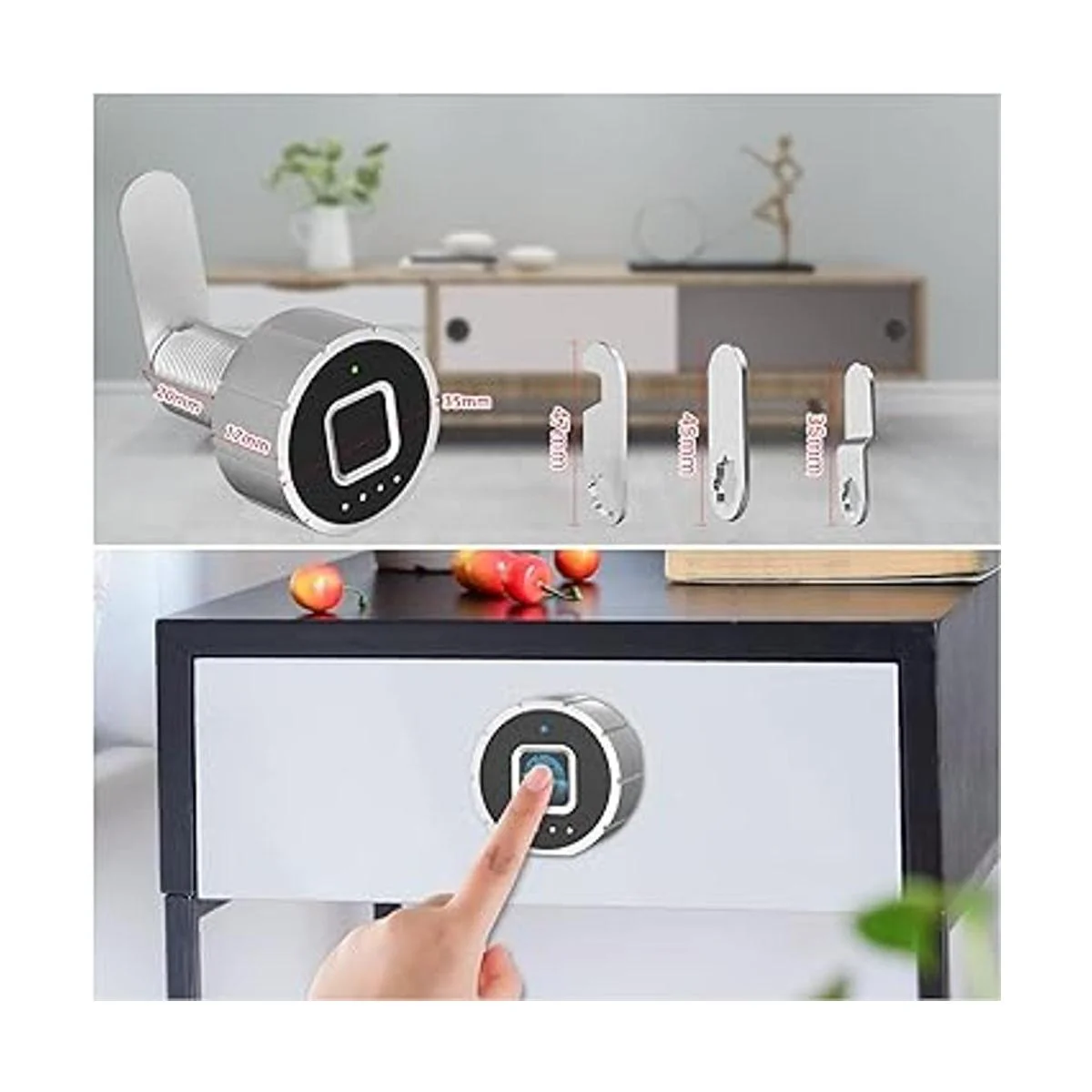 Amplia aplicación: el bloqueo de huellas dactilares se puede utilizar ampliamente en muebles, como armarios, cajones, armarios, cajas de almacenamiento, cajones individuales, etc. Fácil instalación. Siempre y cuando el grosor de tus muebles sea adecuado, se puede aplicar perfectamente. Disfruta de la diversión del bricolaje.