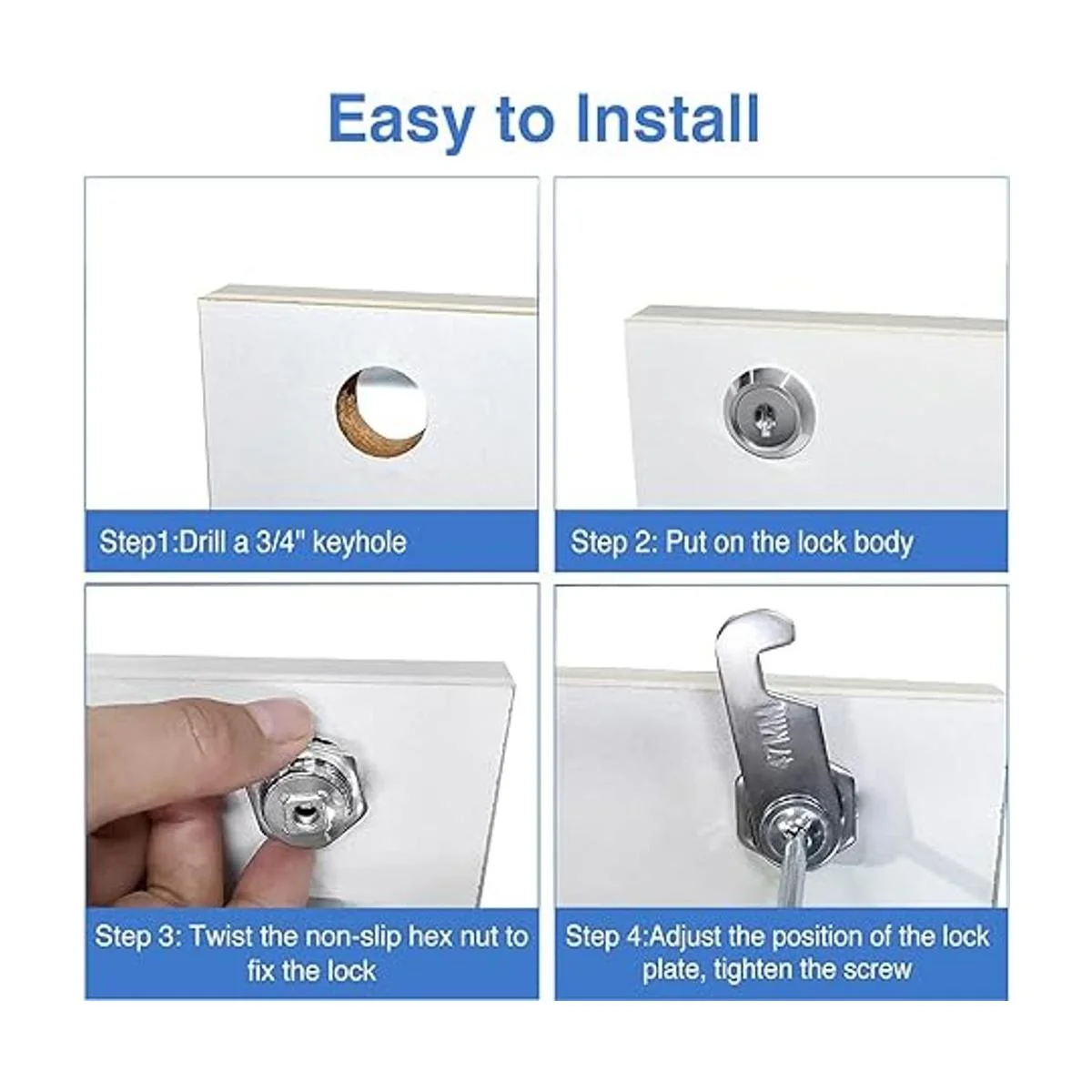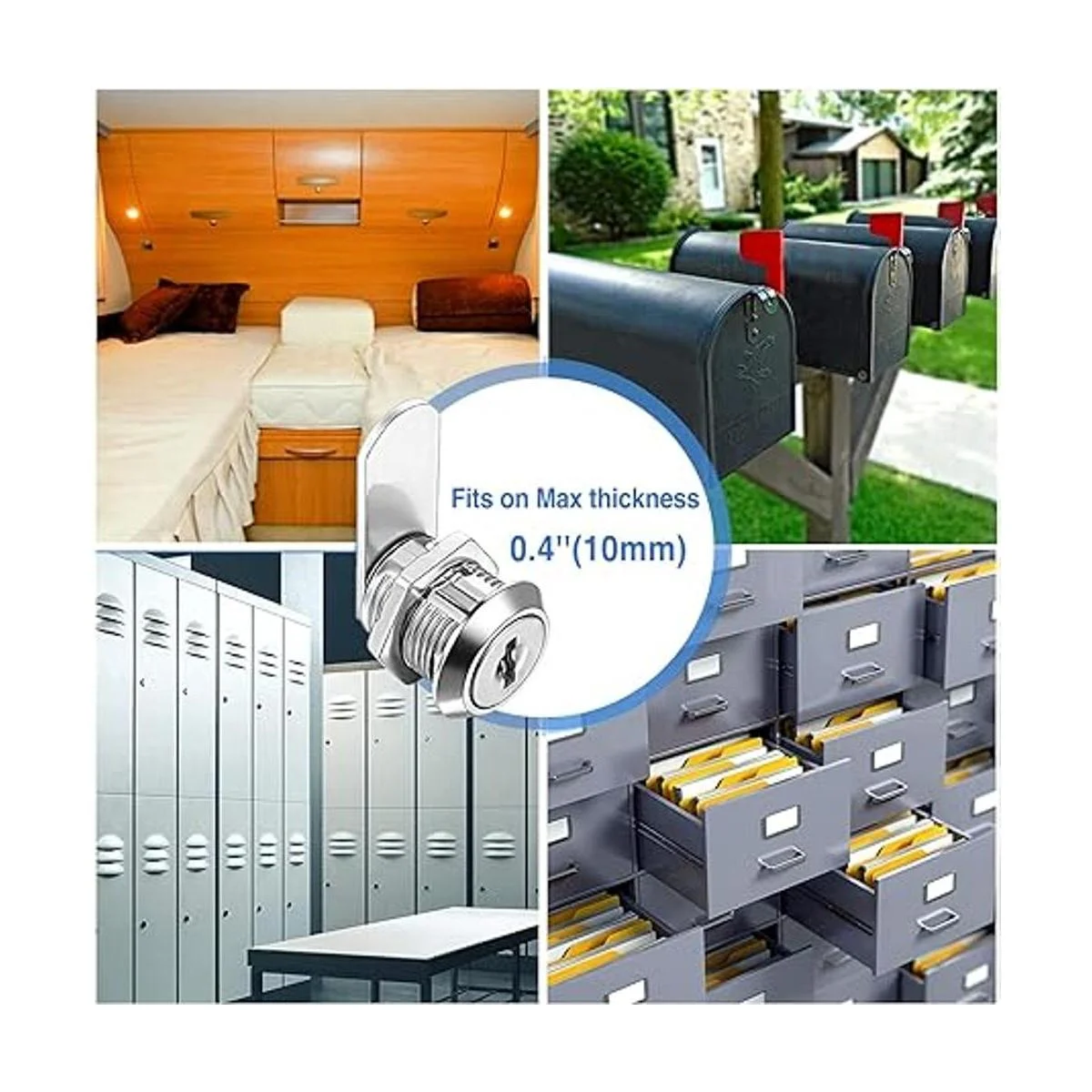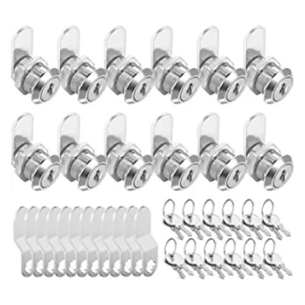 Cerraduras de gabinete con llave igual, longitud del cilindro de 58 pulgadas se adapta a un grosor máximo de panel de 0.4 pulgadas, cajón de archivos seguro, caja de herramientas de almacenamiento para RV, juego de cerradura de repuesto, aleación de zinc 58 pulgadas, 12 unidades