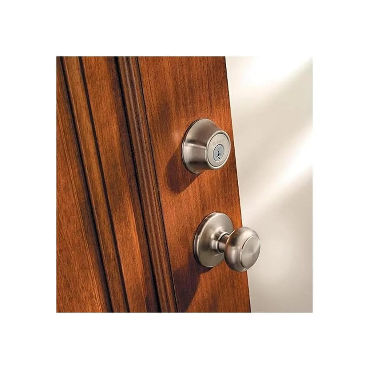 Cerrojo de entrada con llave con un diseño colonial tradicional para una puerta exterior; fácil instalación en pocos minutos con un destornillador. Método de control: aplicación
