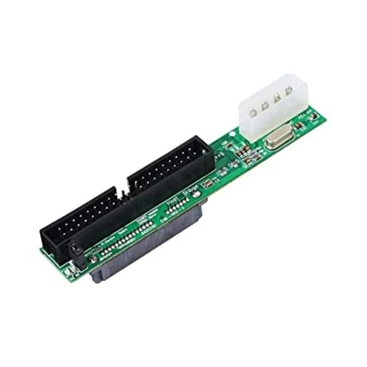 Un puerto SATA hembra de 7 15 pines, un puerto PATA macho de 3,5 IDE de 40 pines y un adaptador de conexión de alimentación Molex de 4 pines