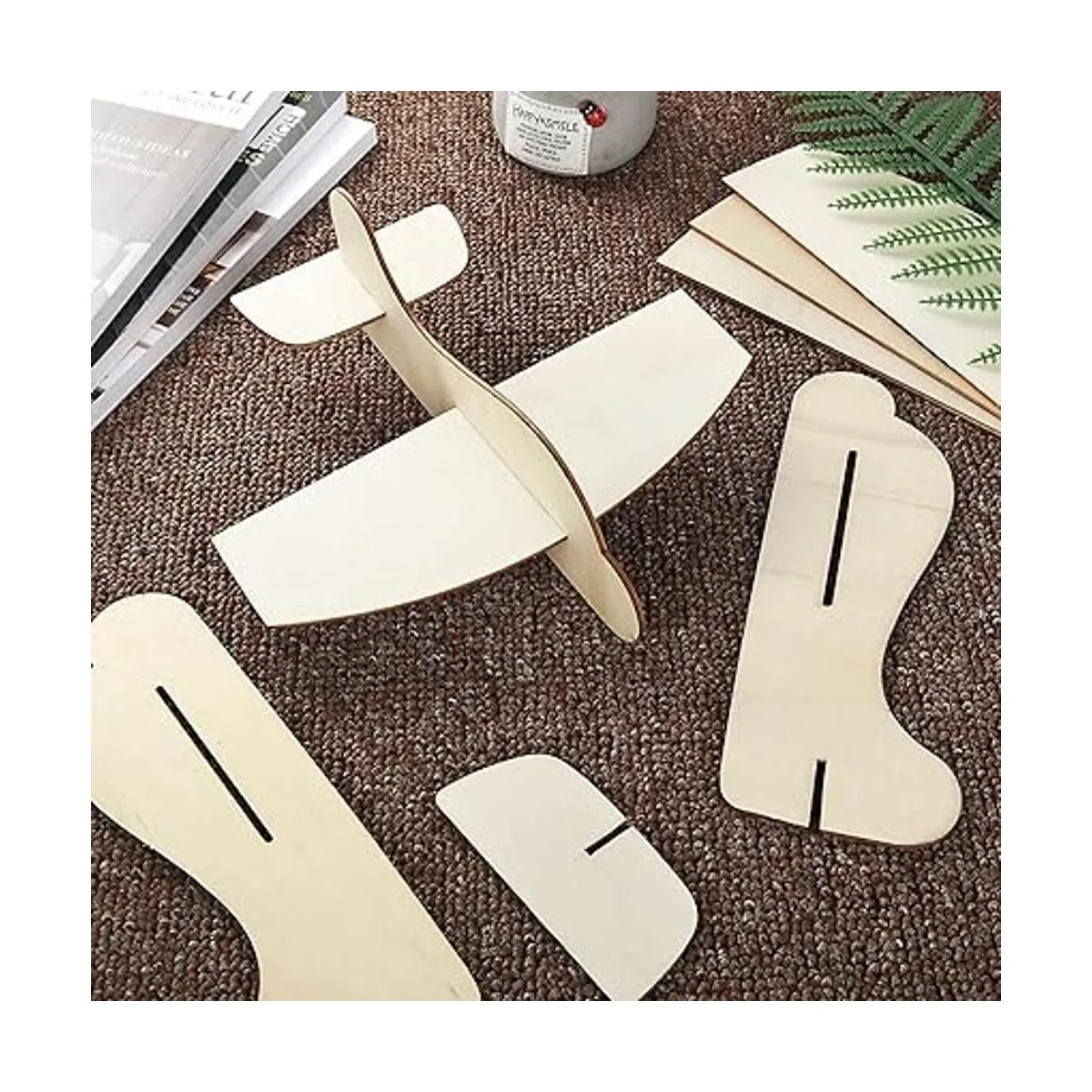 Material: los aviones de madera están hechos de madera que es suave y no tóxica para la piel, duradera y resistente de usar, no es fácil de romper, el borde ha sido pulido, sin rebabas, por lo que no dañará tus manos.