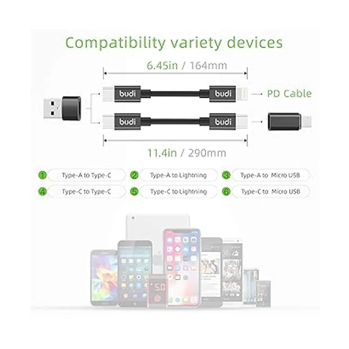 Certificado Budi MFi Cable USB tipo C y 3 tipos de adaptador USB, juego de combinación de adaptador USB, convertidor de cable, caja de almacenamiento para viajes, almohadilla de teléfono, carga de PC, transferencia de datos de computadora