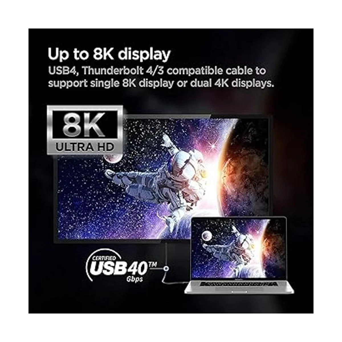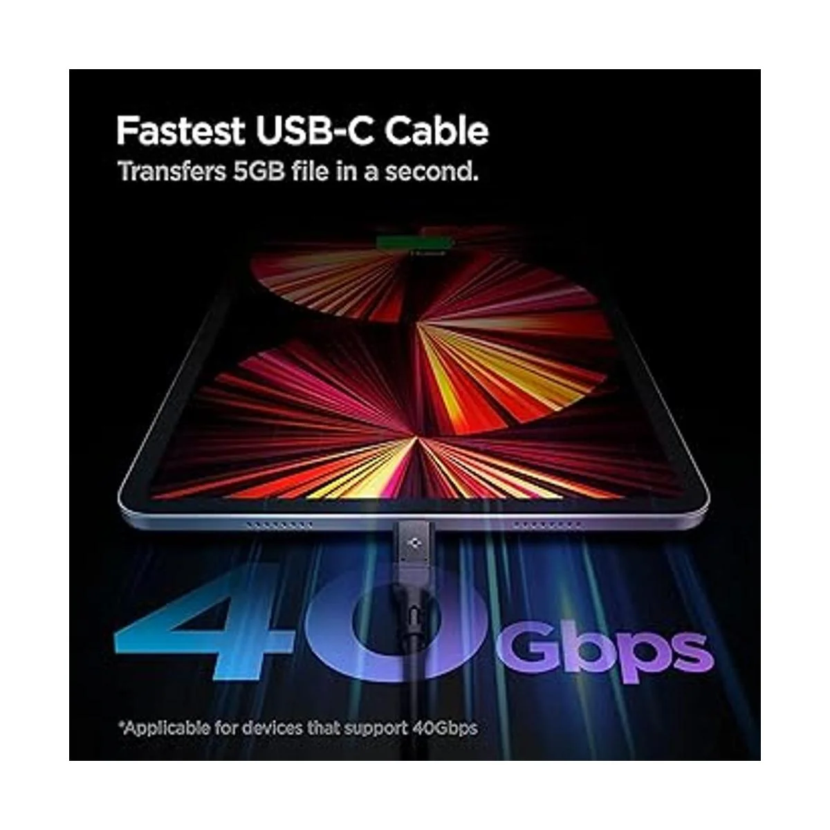 Certificado USBIF Cable USB 4 Spigen para cable Thunderbolt 4, carga de 100 W, 40 Gbps, transferencia de datos, 8K, video tipo C para Thunderbolt 4, 3, MacBook Pro, iPad, Galaxy S22, Mac Mini M1, SSD externo EGPU de 2.6 pies