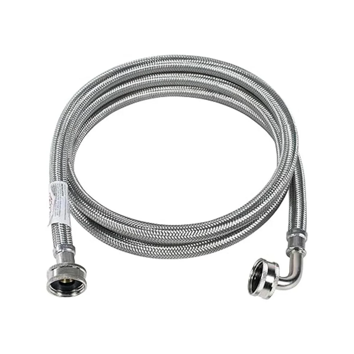 Certified Appliance Accessories Manguera de lavadora con codo de 90 grados, línea de suministro de agua caliente o fría, 6 pies, núcleo de PVC con acero inoxidable trenzado de alta calidad, platapeltre, WM72SSL