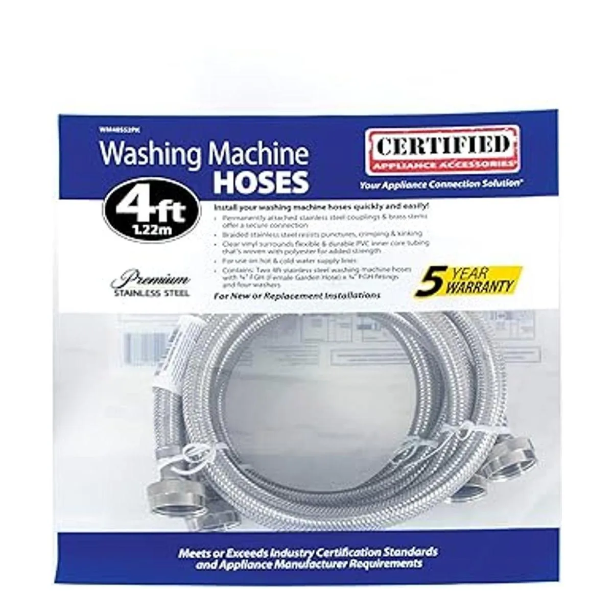 Certified Appliance WM48SS2PK paquete de 2 conectores de 48 pulgadas flexibles de acero inoxidable para máquina lavarropa