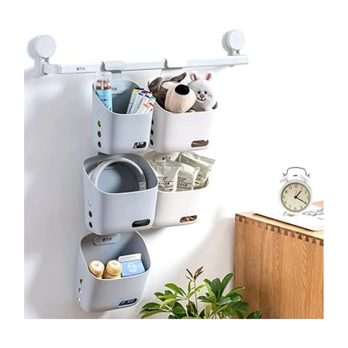 Cesta colgante de plástico para cocina, cesta con gancho desmontable, cuélgala detrás de una puerta o en una barandilla, sobre la puerta del gabinete, gris, paquete de 2