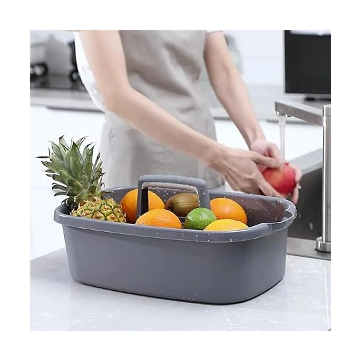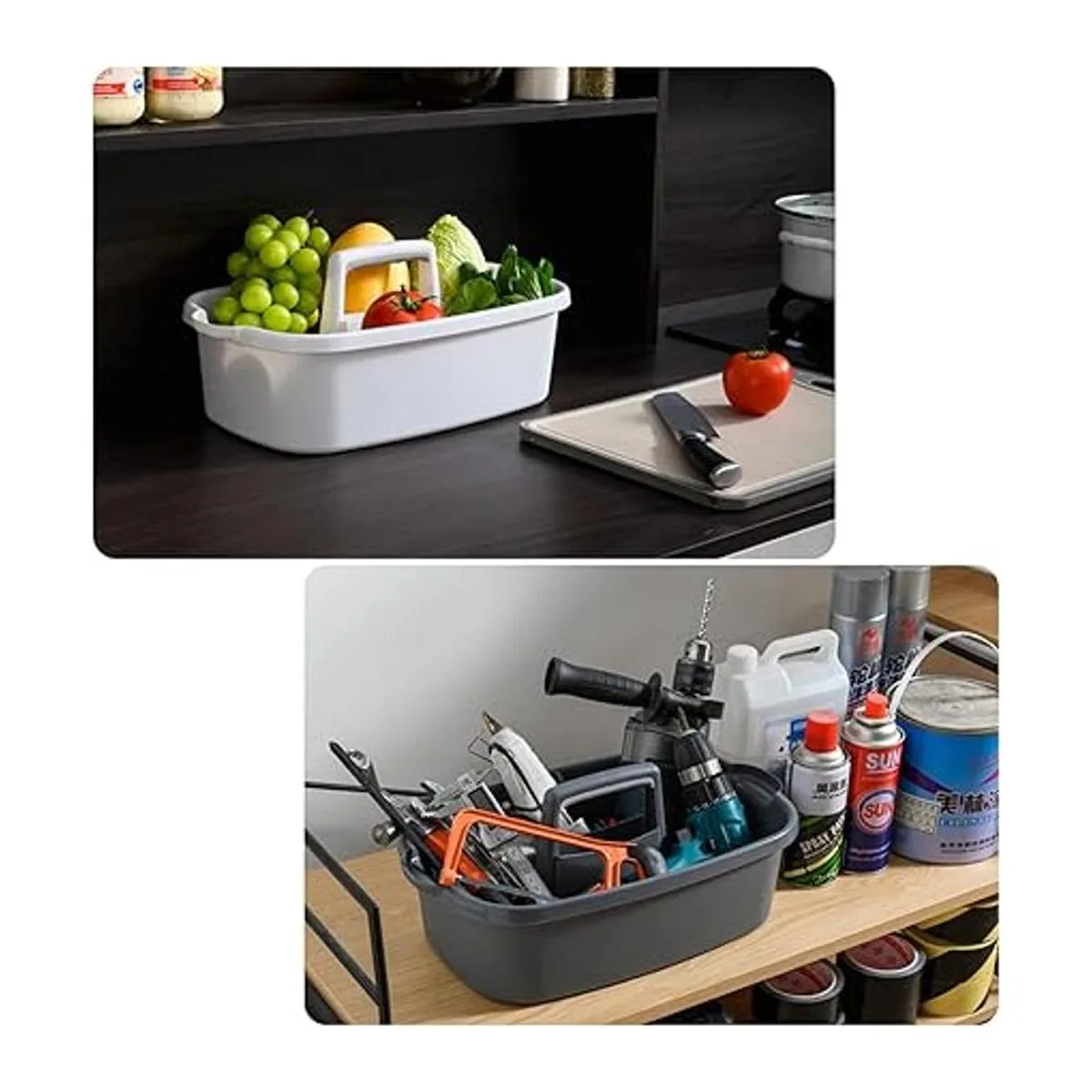 Cesta de almacenamiento grande de plástico portátil con asa para baño, dormitorio, cocina, dormitorio universitario, jardín, garaje, herramienta, suministros de limpieza, gris oscuro
