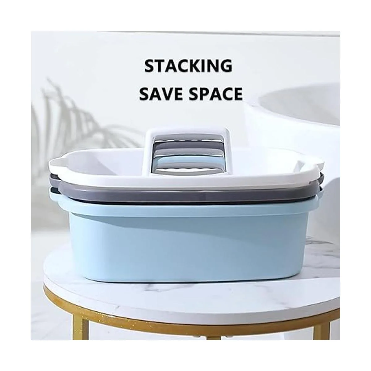 Cómodo de transportar: la cesta de plástico con asa se puede apilar fácilmente cuando no está en uso, maximizando el uso del espacio. La bolsa de limpieza tiene un mango ranurado que se adapta perfectamente a tu mano, lo que te permite moverla fácilmente.