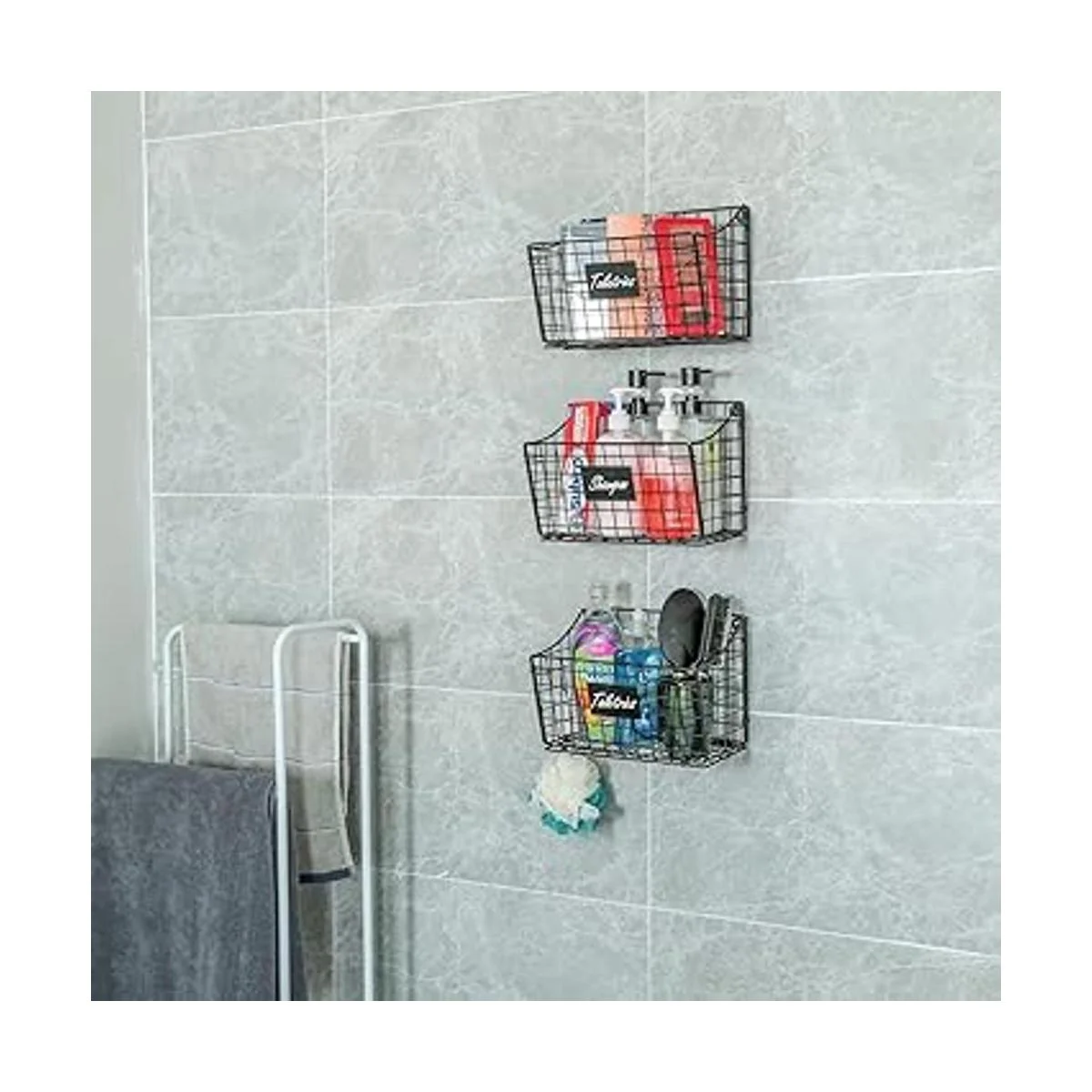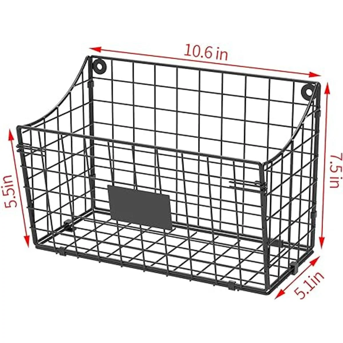 Diseño abierto y dimensiones: fabricado con un marco de metal de alambre resistente, esta cesta montada en la pared cuenta con una parte delantera baja y trasera alta para mantener tus artículos perfectamente guardados y fácilmente accesibles. Tamaño de cada cesta: 10.6 x 7.5 x 5.1 pulgadas, limpia la cesta con un paño húmedo y una toalla.