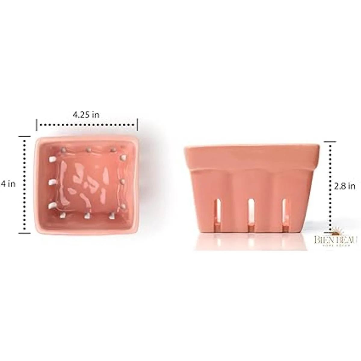 Cesta de cerámica de granja, colador, decoración de fresa, cuencos de frutas, cestas de frutas, cuenco de cocina de fresa kawaii, juego de 4 cuencos cuadrados de cosecha de cerámica con patrón de fresa, color rosa y blanco