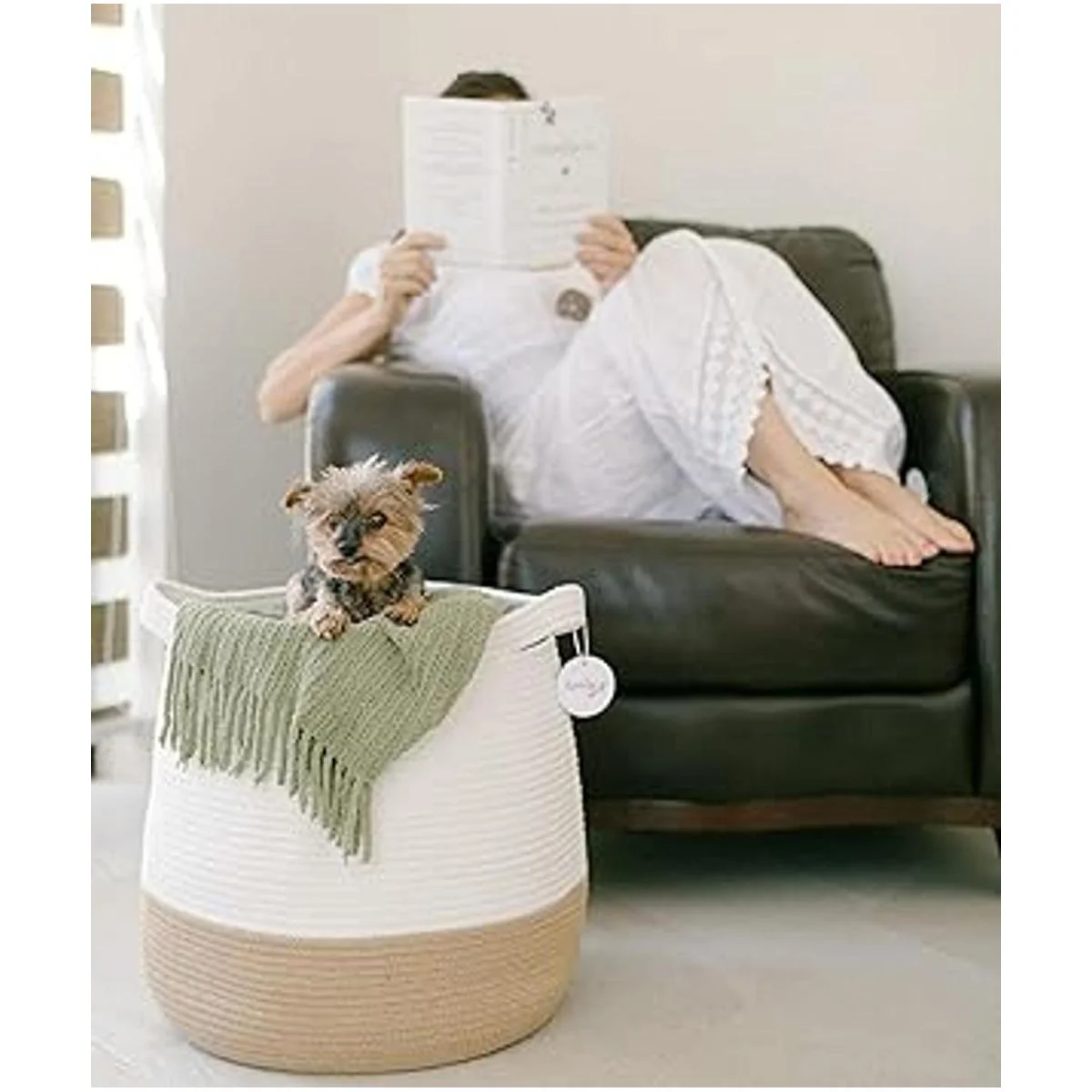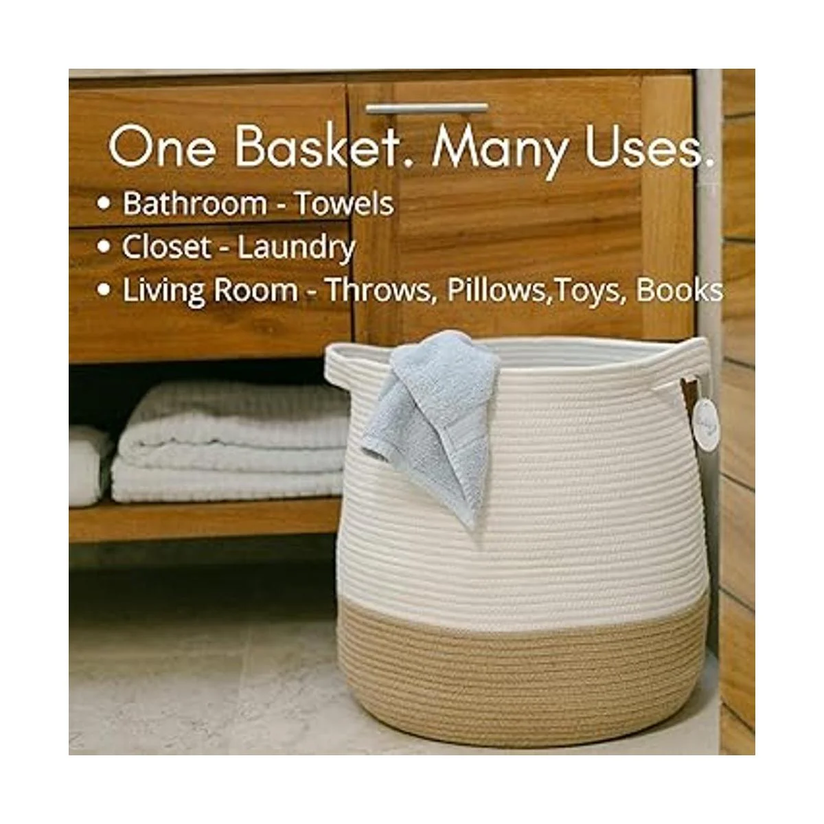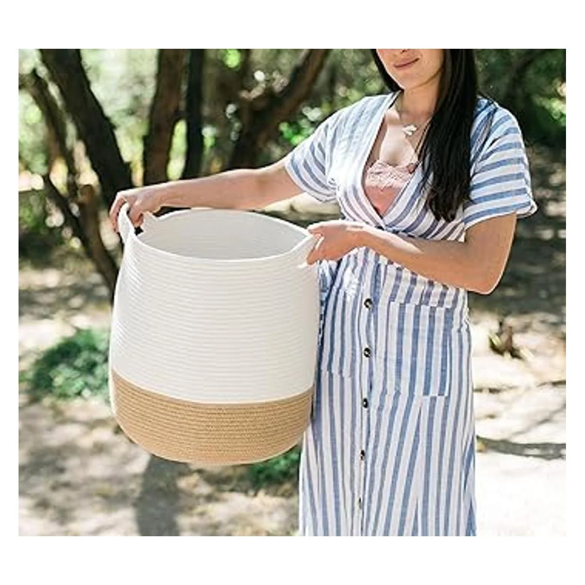 Cesta de almacenamiento duradera: nuestras canastas son de alta calidad y están bien diseñadas con costuras reforzadas alrededor de las asas. Esta cesta de cuerda grande tiene asas fuertes y resistentes que hacen que sea fácil de transportar para una caminata entre tu dormitorio y cuarto de lavandería lleno de tu ropa. Es una gran cesta para la colada