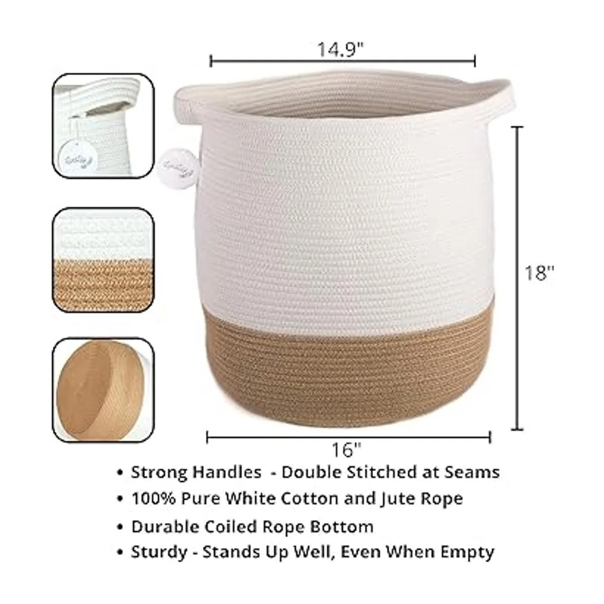 Cesta de manta grande para sala de estar, cestas tejidas decorativas para almacenamiento, cestas de cuerda de algodón para almacenamiento de 16.0 x 18.0 in, cesta redonda, cesta alta de lavandería, cestas LuxiLily