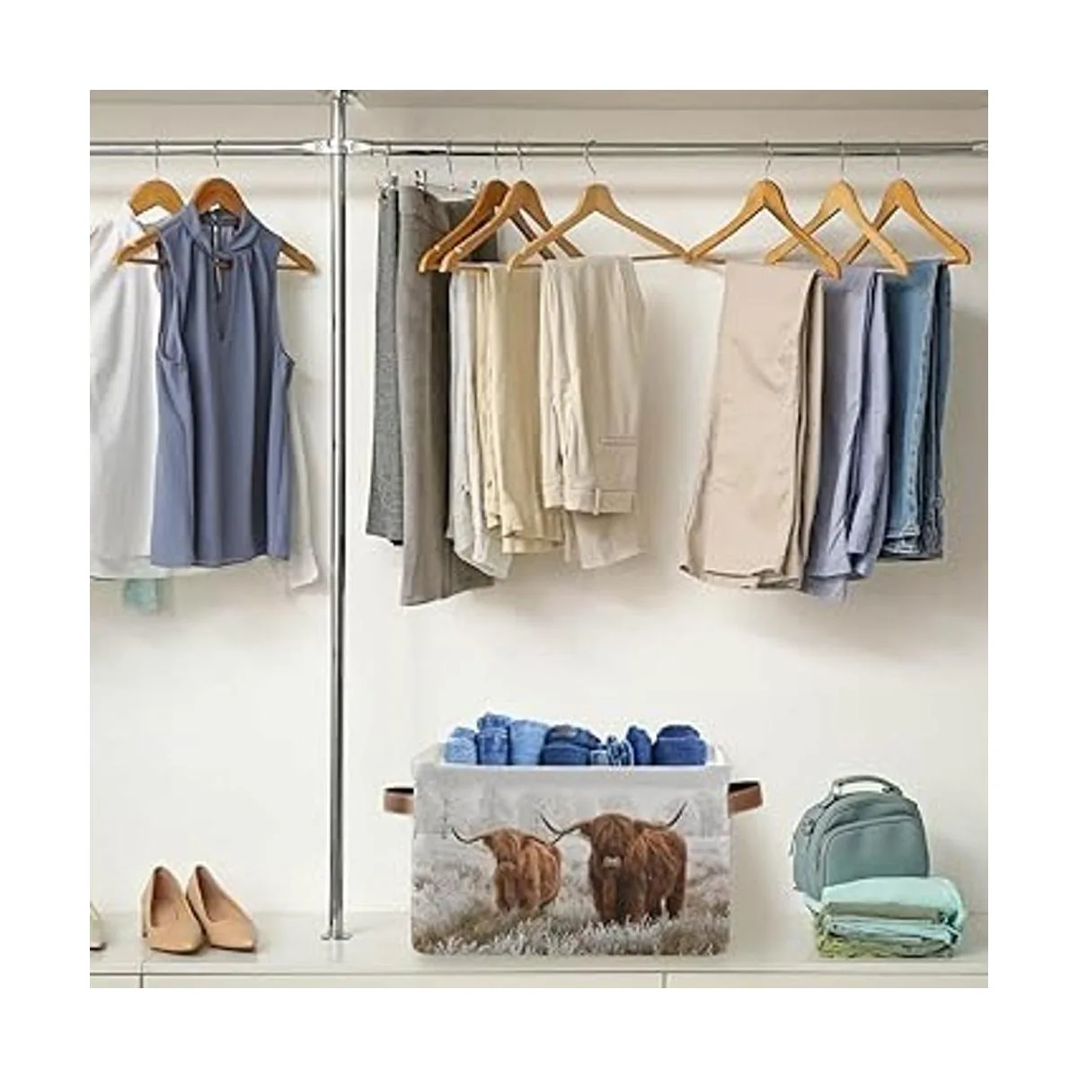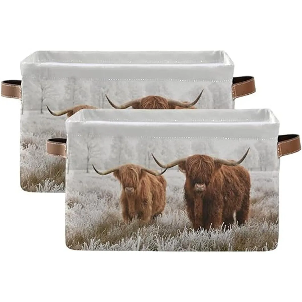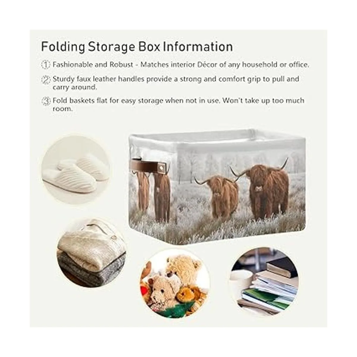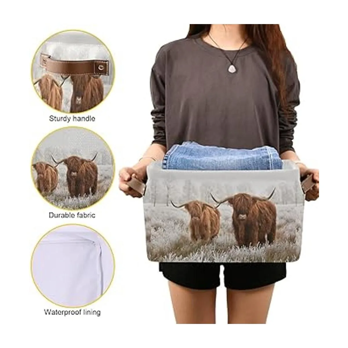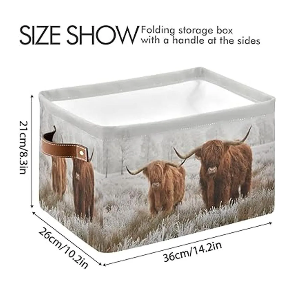 Cesta escocesa de almacenamiento de tela para vaca de las tierras altas escocesas, cestas de almacenamiento plegables de animales divertidos para bebé, perro, juguetes, libros, estante, cesta de armario de 16 x 12 x 8 pulgadas