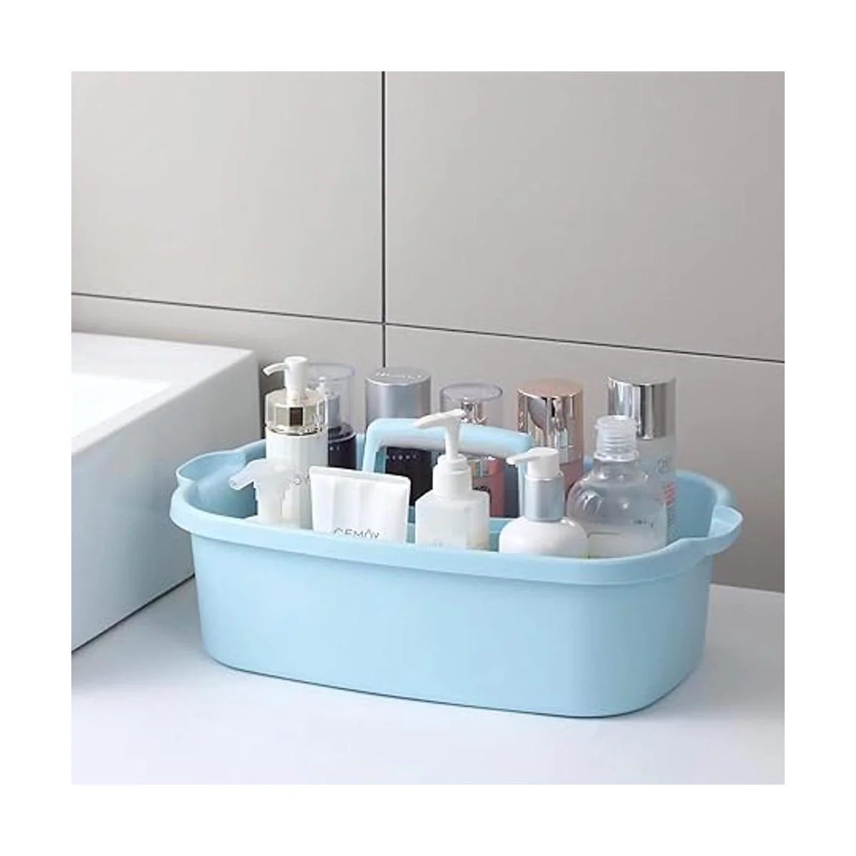 Cesta grande de almacenamiento de plástico portátil para ducha con asa para baño, dormitorio, cocina, dormitorio universitario, jardín, garaje, herramienta, suministros de limpieza, azul