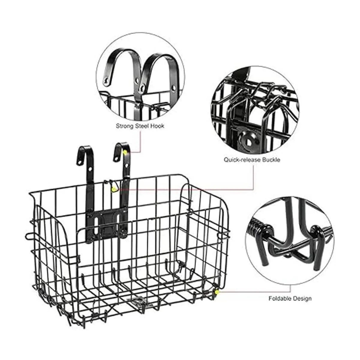 Cesta plegable para bicicleta, cesta delantera para bicicleta con asas, a prueba de óxido, fácil instalación en el manillar delantero, cesta de bicicleta, bolsa de bicicleta, estante de carga para accesorios de bicicleta de montaña