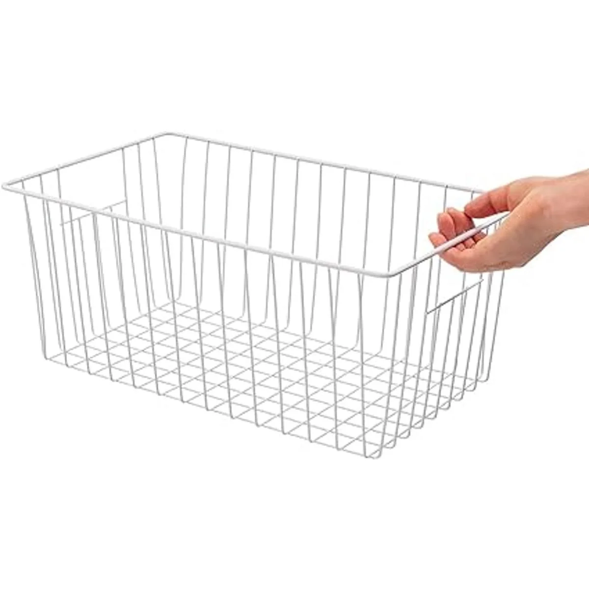 Comodidad: esta cesta de almacenamiento de alambre con asas integradas para portabilidad, simplemente agarra y listo. El espaciado de cables abierto te permite ver de un vistazo el artículo que deseas, no te pierdas nada. Utiliza varios contenedores juntos para crear un sistema de organización de clientes que funcione para ti. Las cestas vacías se pueden apilar para ahorrar espacio.