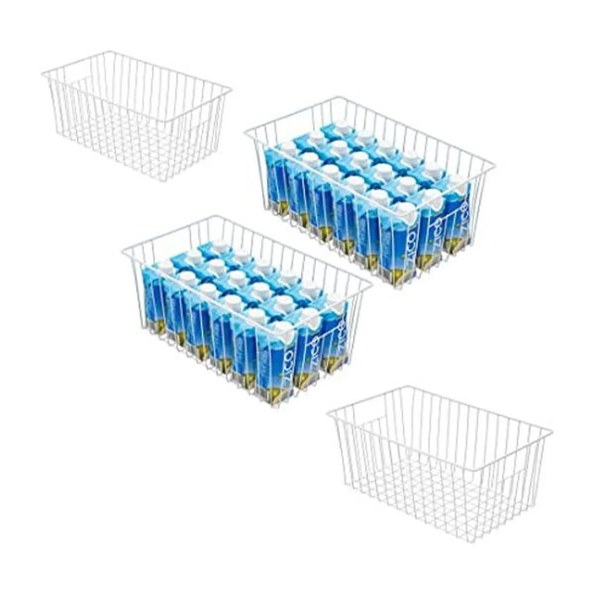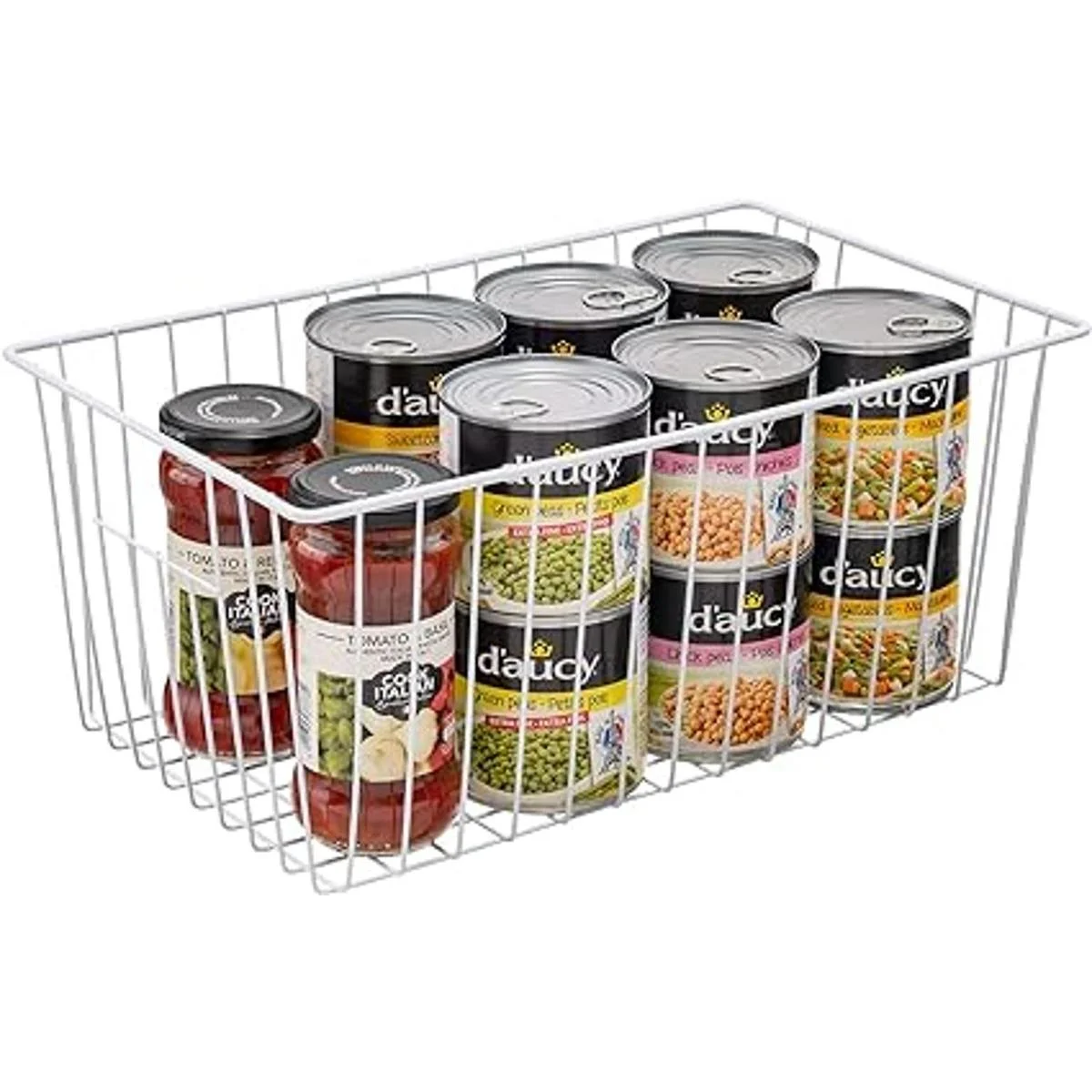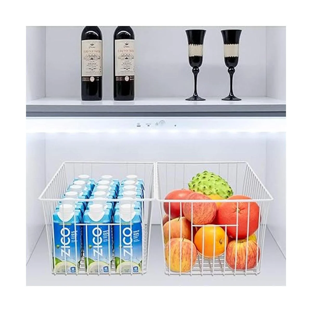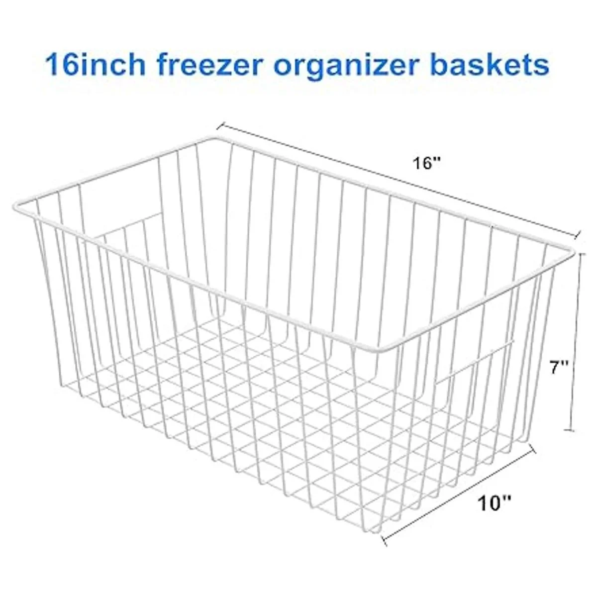 Cestas organizadoras de almacenamiento para congelador de 16 pulgadas, contenedores de refrigerador de alambre para el hogar con asas integradas para gabinete, despensa, armario, dormitorio
