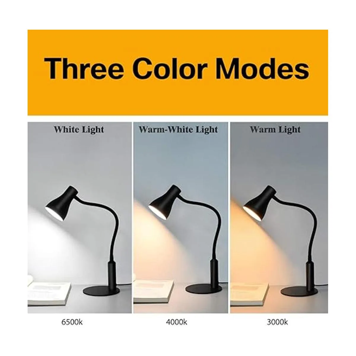 3 temperaturas de color y 6 niveles de brillo: esta lámpara LED profesional cuenta con atenuación continua, 6 niveles de brillo para cada modo de color, luz cálida de 3000 K, luz blanca cálida de 4500 K y luz fría de 6500 K. La luz cálida suave es perfecta para el dormitorio, la luz diurna es ideal para estudiar y trabajar de noche, necesitas luz para ver cosas pequeñas claramente Verás que la luz fría sería muy útil.